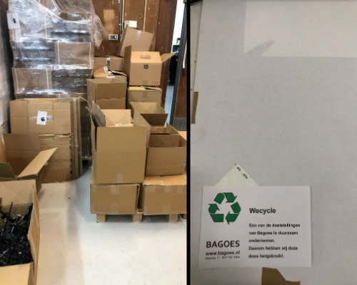 Gebruiken we toch plastic? Dan recyclen wij dat. Al het doorzichtige plastic wordt apart verzameld en gerecycled. We doen dit bij zowel bestellingen als in onze kantine. In onze kantine scheiden wij gft, plastic en restafval. Verder worden onze bestellingen verzonden in kartonnen dozen. Deze dozen worden zo veel mogelijk hergebruikt. Zijn dozen stuk, dan worden ze opgehaald door de lokale sportvereniging.