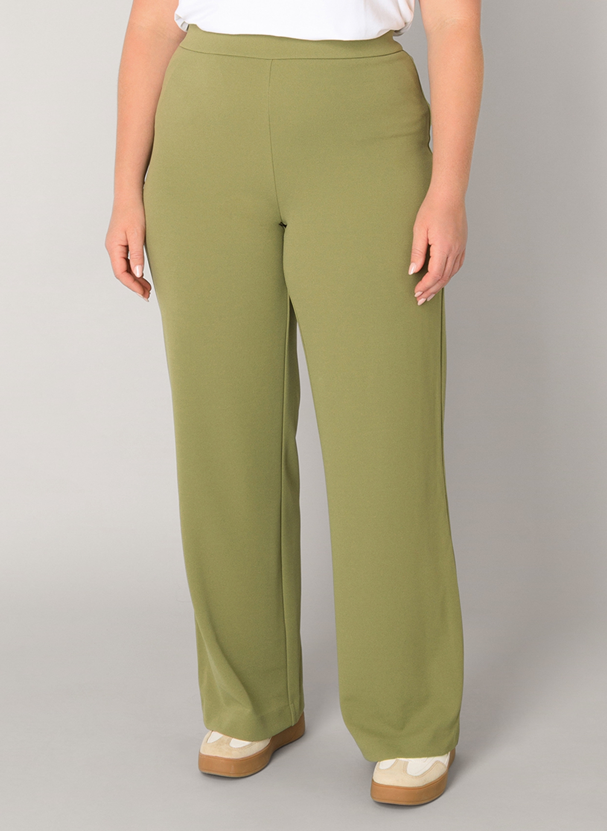 De Arah van Base Level Curvy is een wijde broek van recycled polyester met een elastische tailleband en dichte paspelzakken op het achterpand. Arah is verkrijgbaar in light beige, dark taupe, dark blue en black.