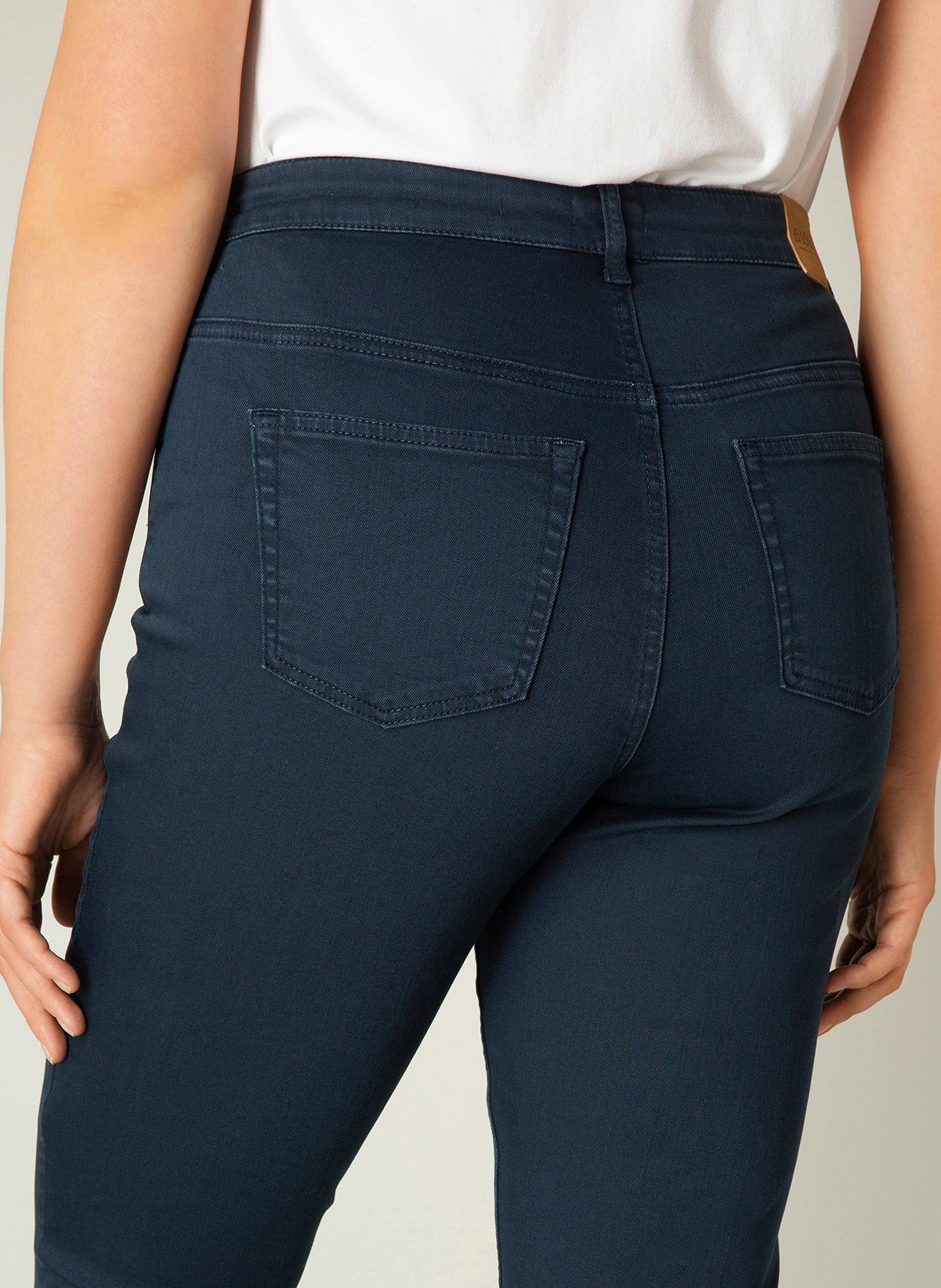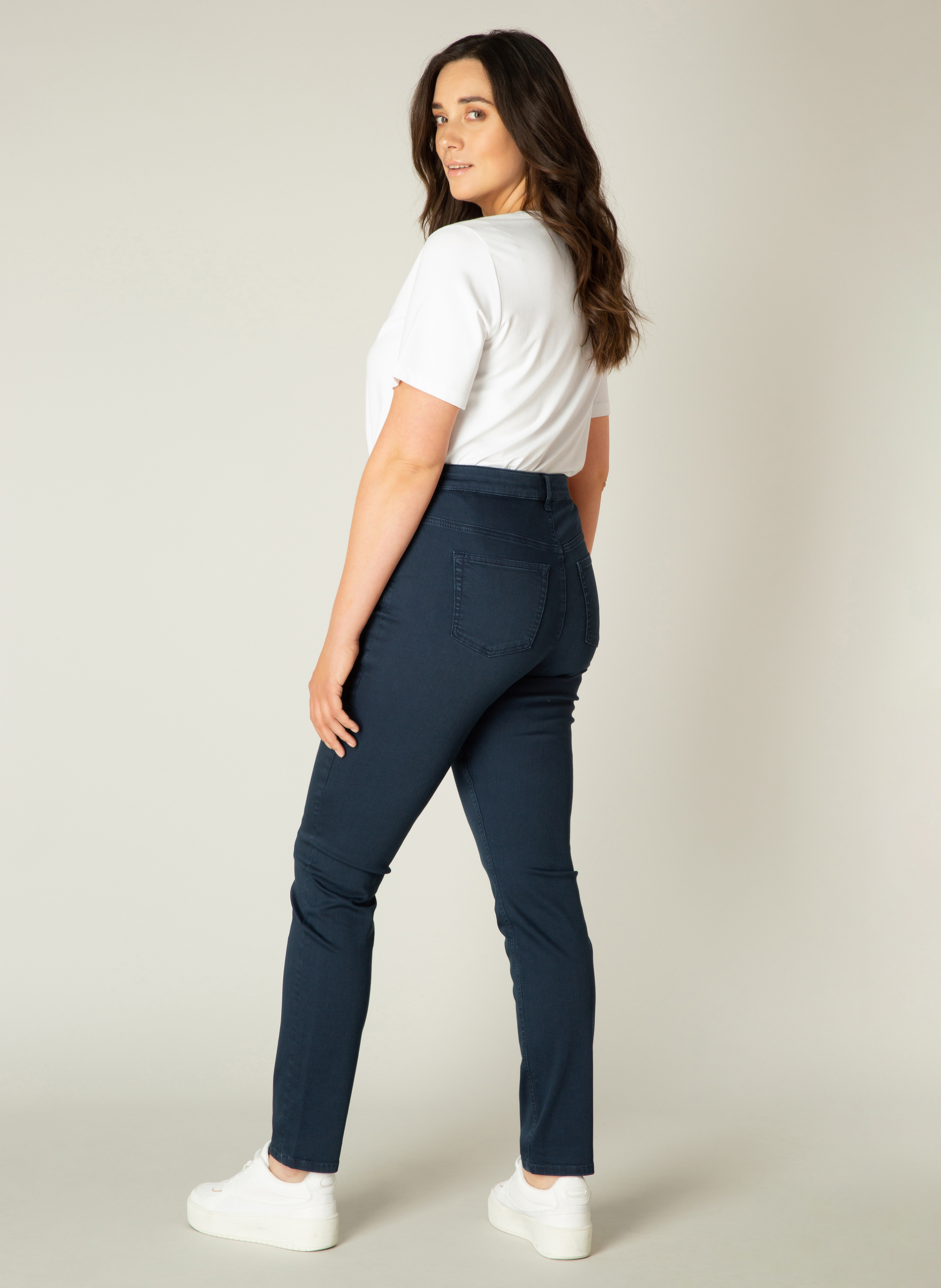 Broek Mella van Base Level Curvy by Yesta is een mid rise denim slim fit model. Hij is gemaakt in een elastische katoenmix coloured denim. Het is een 5 pocket model en een rits- en knoopsluiting. De binnenbeen lengte van de jeans is 81,5cm lang bij maat 50. Bekijk ons hele aanbod van Base Level Curvy by Yesta Basic.