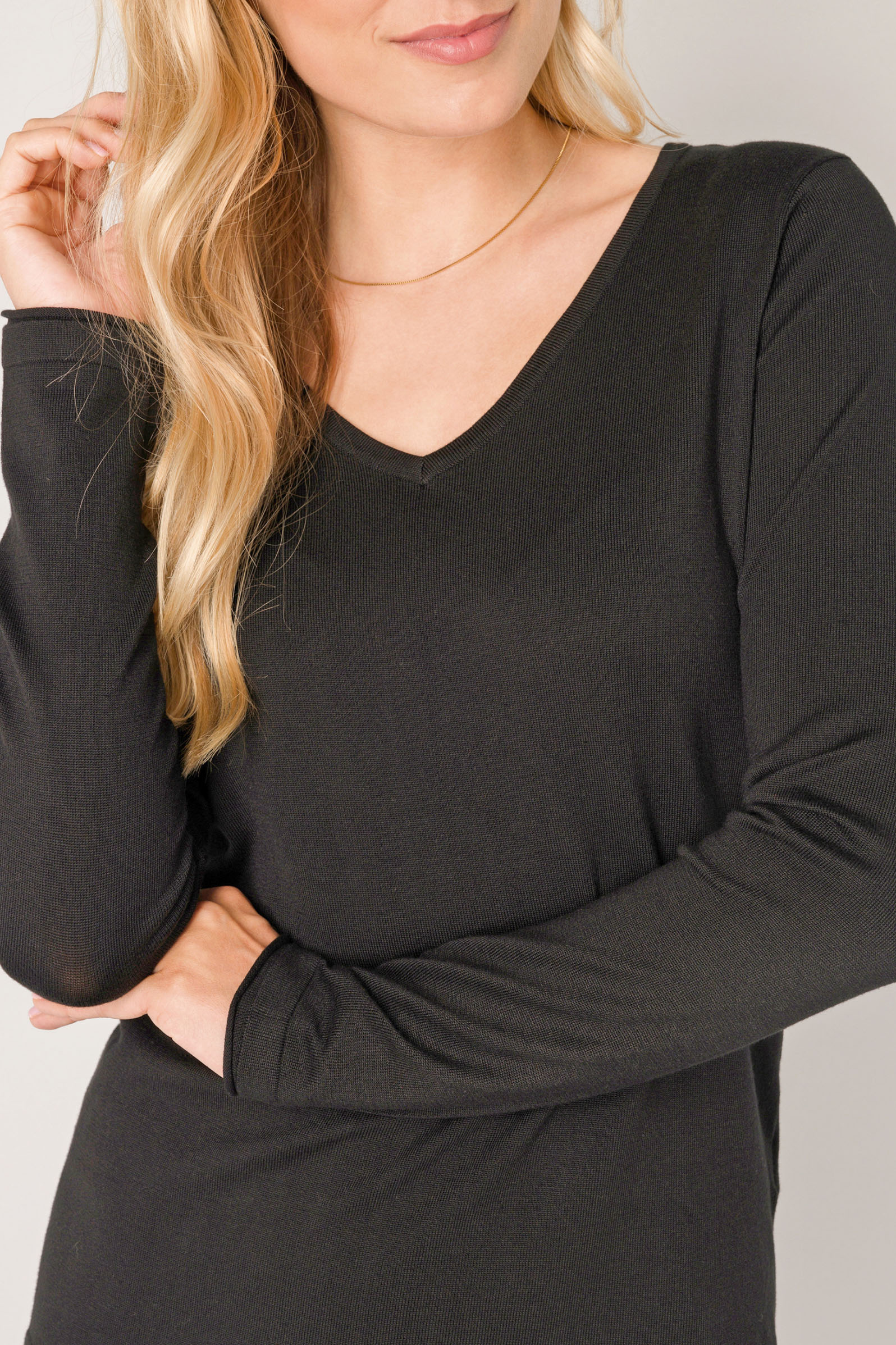 Trui Yola van Base Level by Yest Basic is een perfecte basis trui voor de herfst en winter. De trui is gemaakte in een zachte viscosemix en hij heeft lange mouwen en een v-hals. De trui is 64cm lang. Bekijk ons hele aanbod Base Level by Yest Basic.