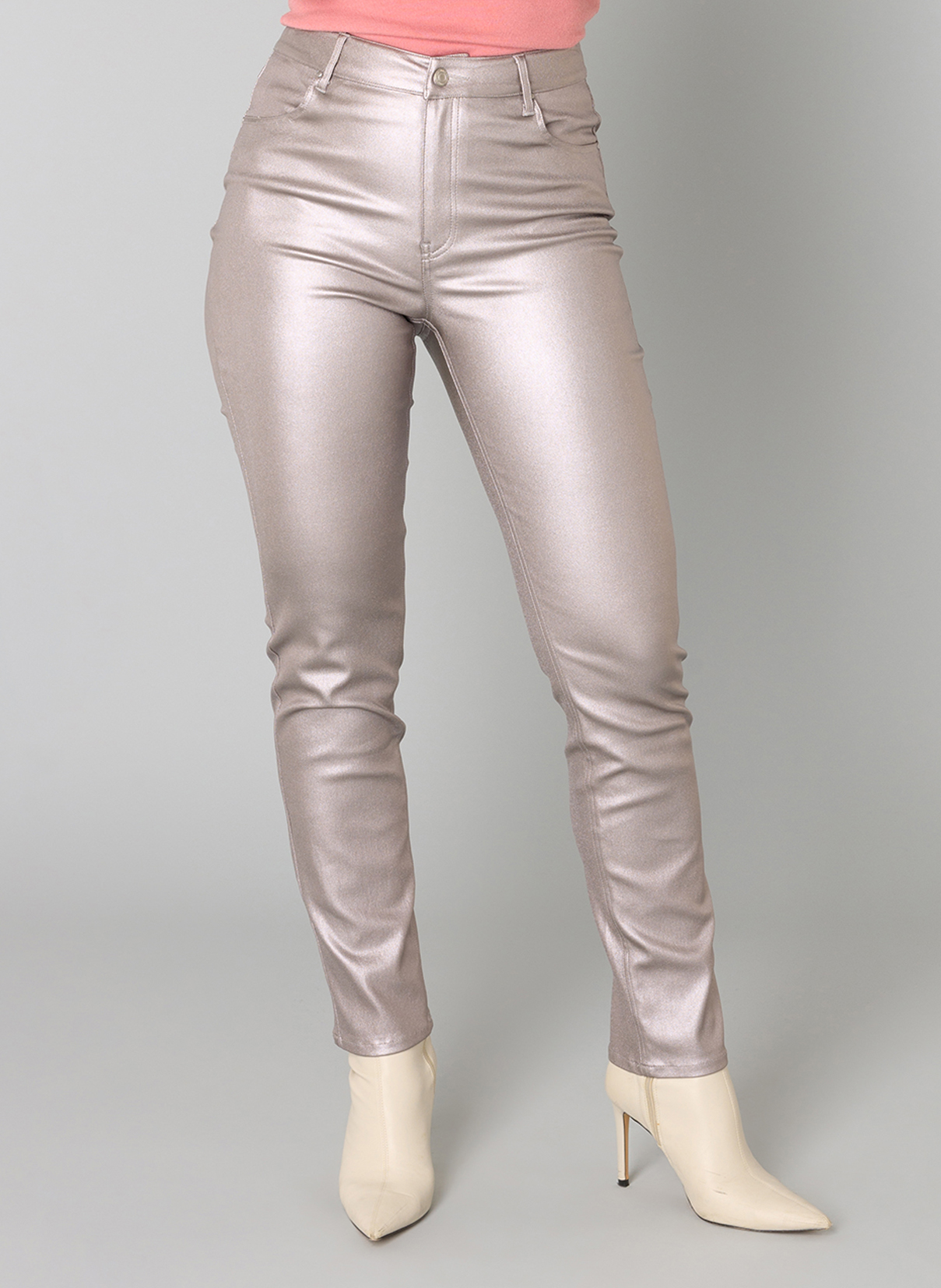De Broek Oelkje Essential van Yest is een opvallend uitgevoerde damesbroek met een metallic coating. Deze skinny fit broek is ontworpen voor een slank silhouet en combineert een moderne, modieuze uitstraling met functionele details. Dankzij het hoog getailleerde ontwerp en de stevige stretchkwaliteit biedt deze broek een nauwsluitende pasvorm met maximaal comfort.