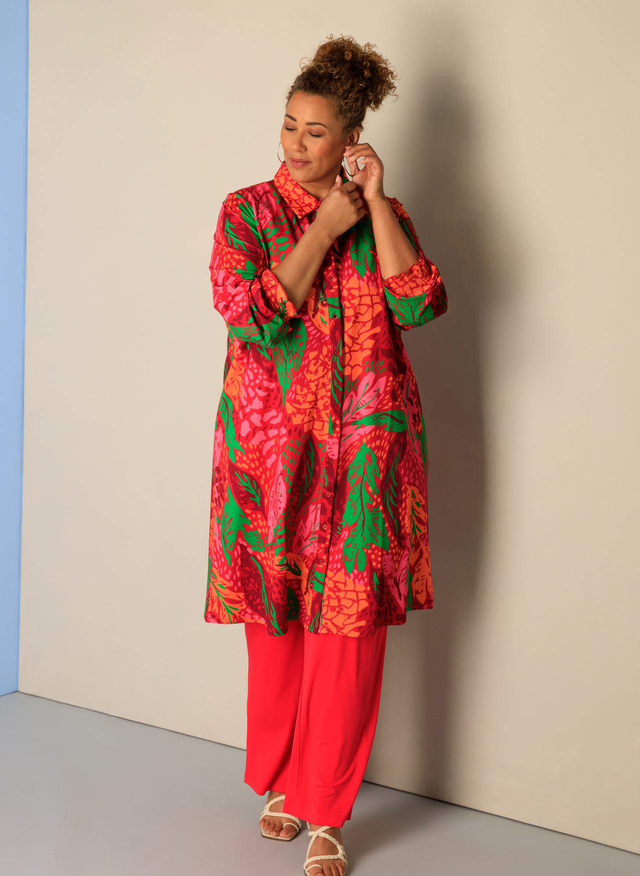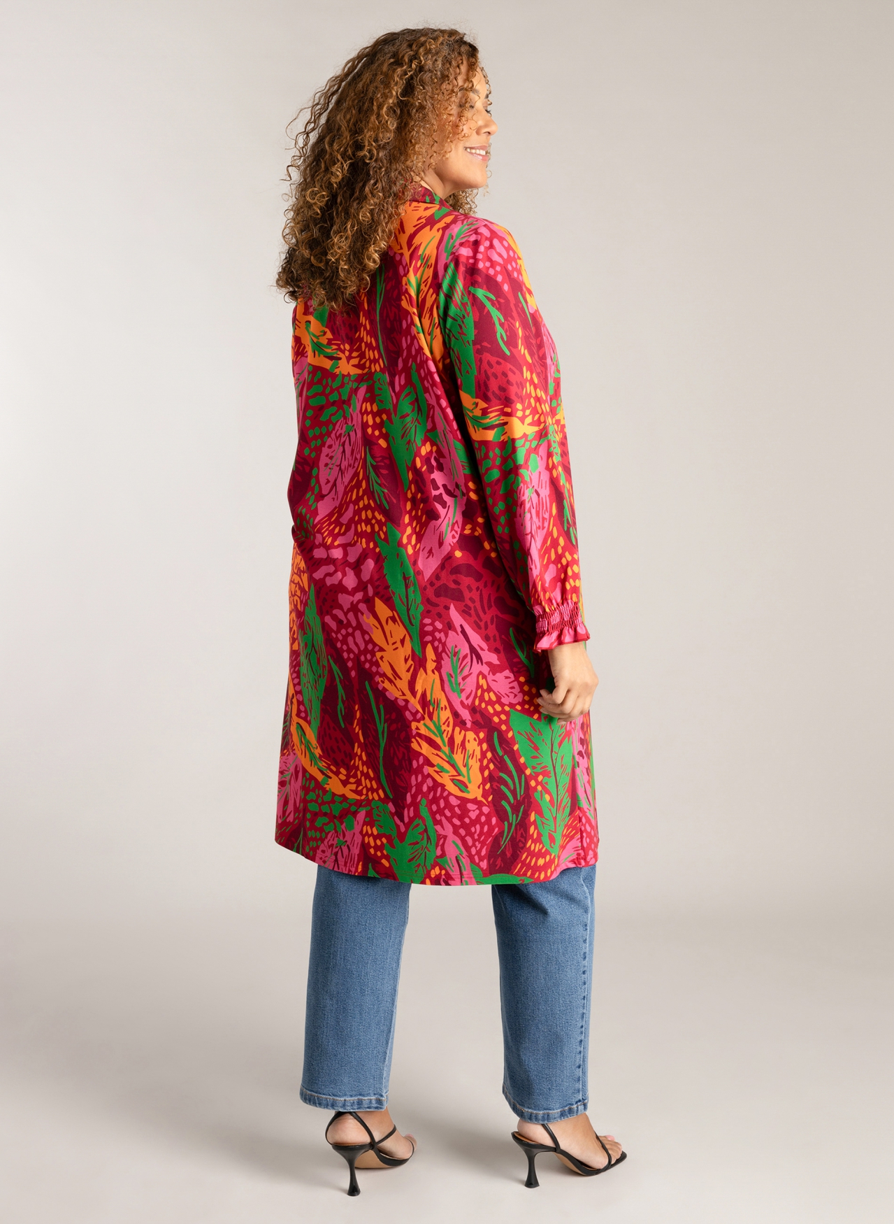 De Nina jurk is een kleurrijk item dat perfect past bij het vroege voorjaar. Dit doorknoopmodel valt tot op de knie en heeft gesmockte manchetten voor een comfortabel accent. Draag hem nu leuk met een broek en later, als het warmer wordt, gewoon als jurk. Lengte 110 cm.