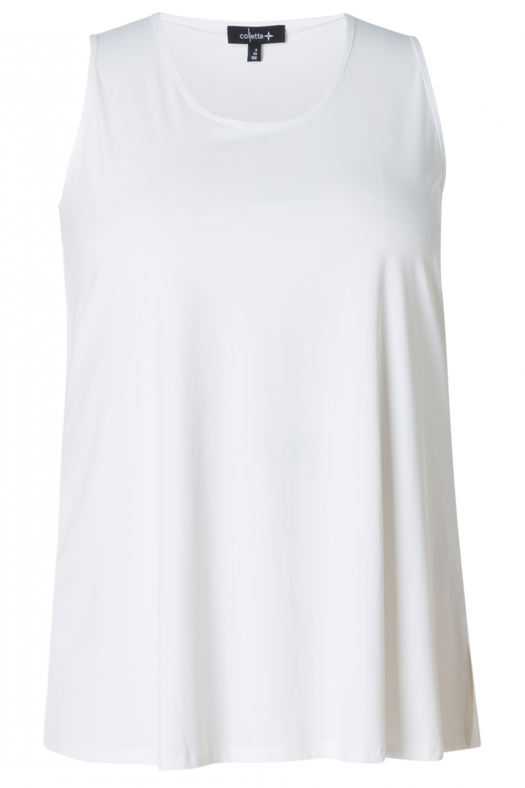 Dit singlet van Colletta in wit is perfect voor de zomer. De ronde halslijn en de gladde jersey stof bieden zowel comfort als stijl. Het luchtige ontwerp maakt het ideaal voor warme dagen, en het past bij verschillende outfits De broek in hetzelfde materiaal is de 9000579.