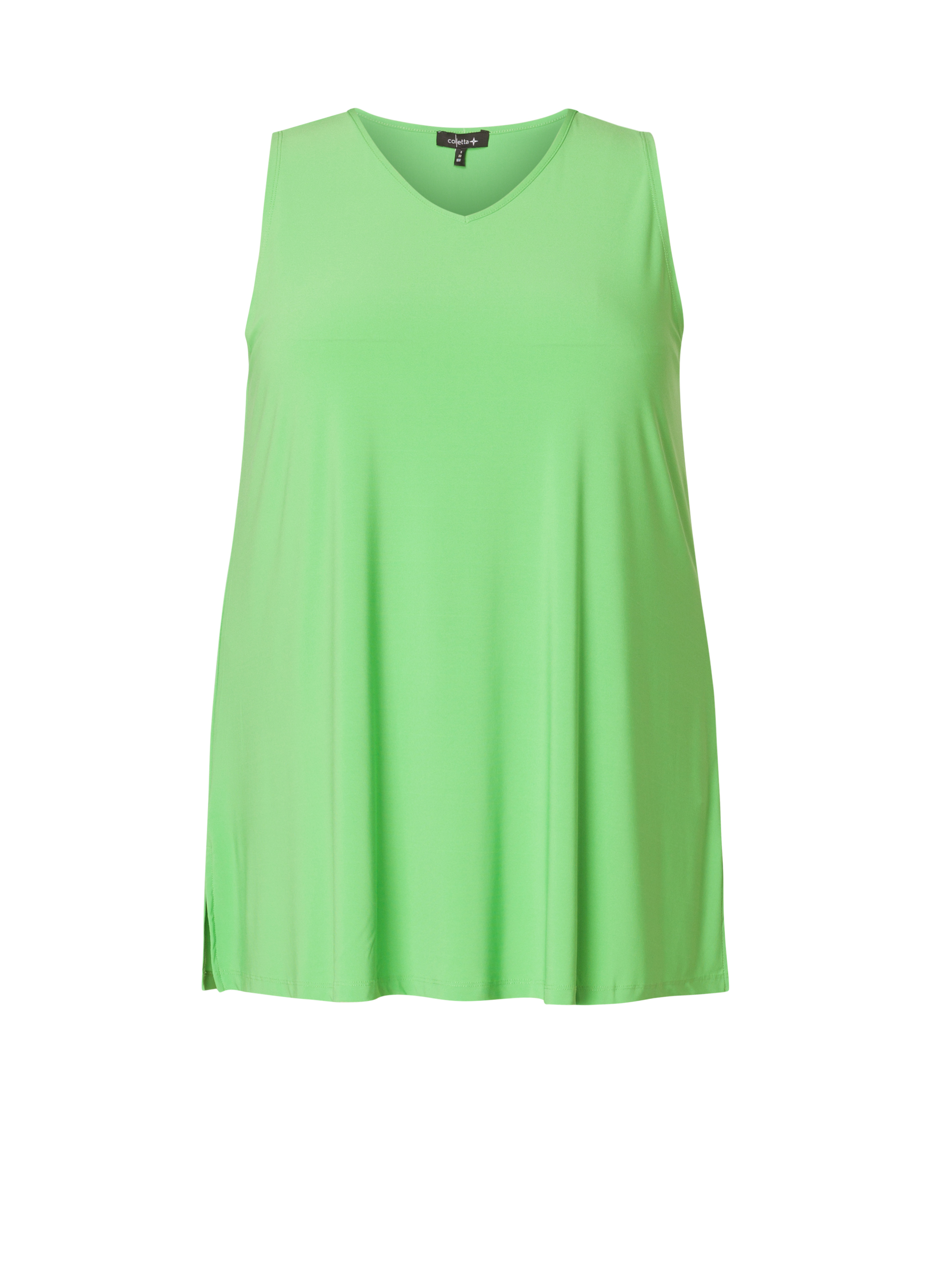 Uni basis singlet van Colletta is gemaakt in een mooie gladdere tricot die goed meerekt. Hij heeft een V hals en een Alijn pasvorm. Hij valt iets kleiner dan de andere maten van Colletta.