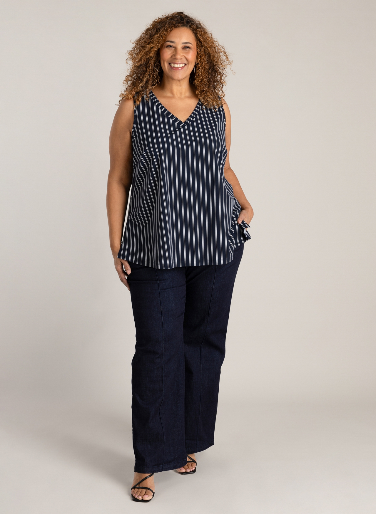 Deze tuniek met streepjesprint is gemaakt van comfortabele travelstof die soepel valt, vormvast is en nauwelijks kreukt. Tuniek Nena is een prettig item dat je makkelijk combineert met een broek of blazer. Lengte 74 cm.