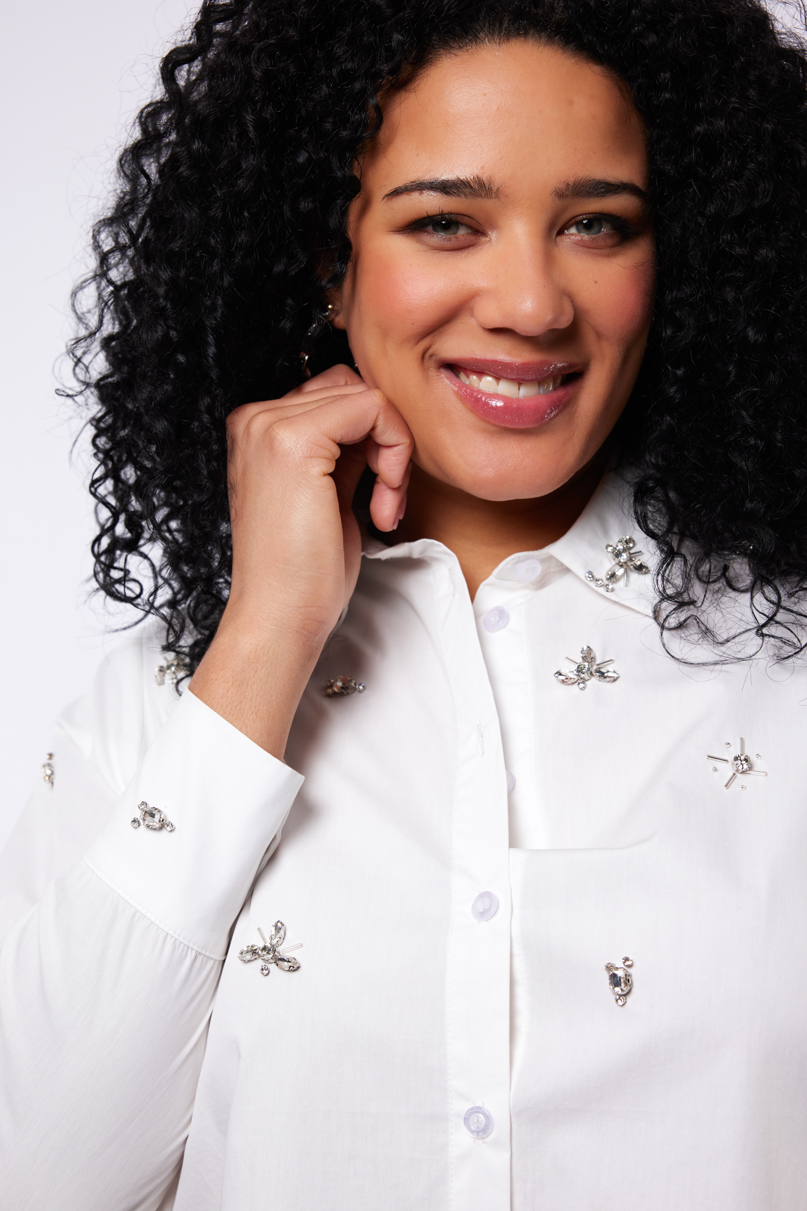 Dit is een leuke blouse Jessie van Exxcellent met gedetailleerde versieringen. Deze is gemaakt van een lekkere stof die prettig aanvoelt. De blouse heeft een kraag, knopen aan de voorkant, lange mouwen en delicate siersteentjes. De stijl is mooi en simpel, waardoor je deze makkelijk kunt combineren met bijvoorbeeld een spijkerbroek of een rok