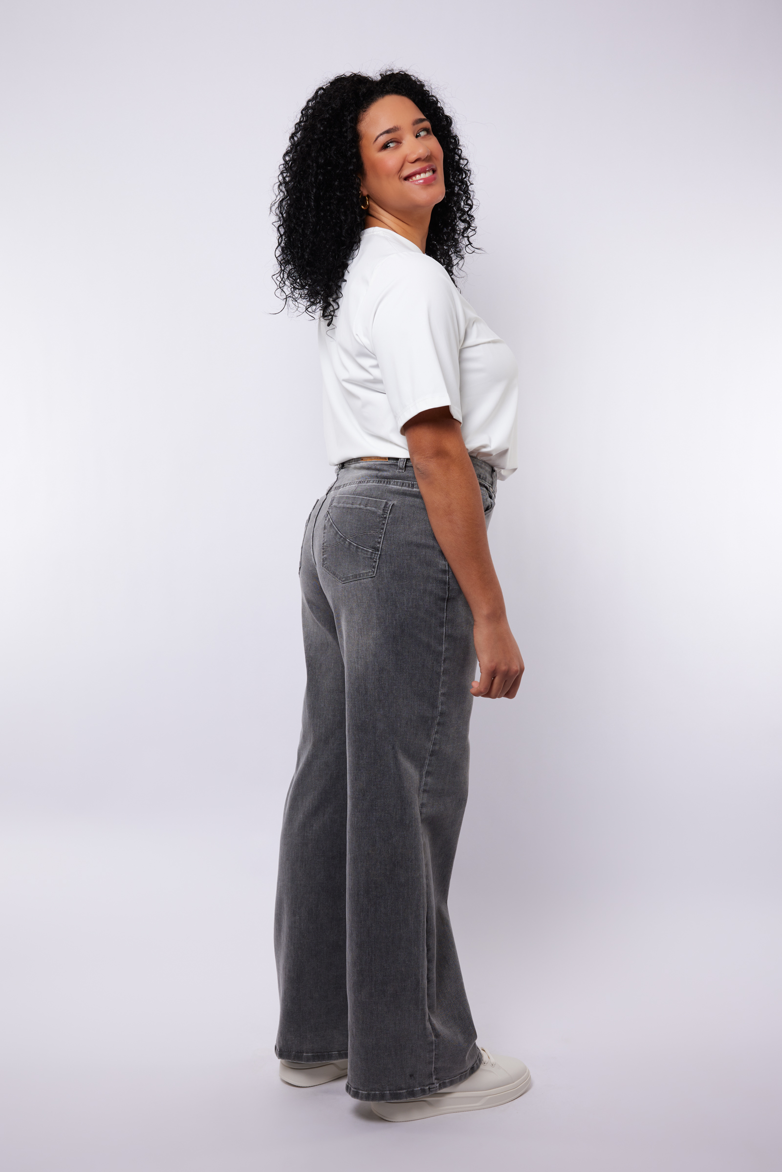 De Exxcellent Neona jeans is een stijlvolle en comfortabele jeans die perfect past binnen de plus size collectie van Bagoes. De wide leg pasvorm geeft de jeans een moderne en luchtige uitstraling, terwijl de wijde pijpen soepel langs het lichaam vallen. Dit zorgt voor een relaxed gevoel met een vrouwelijke twist.