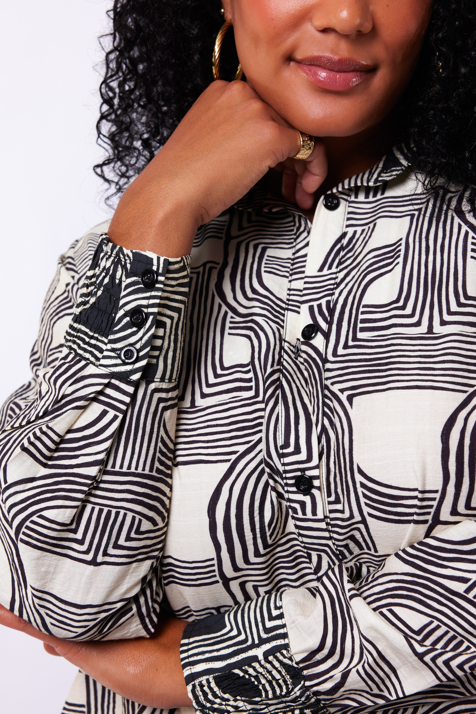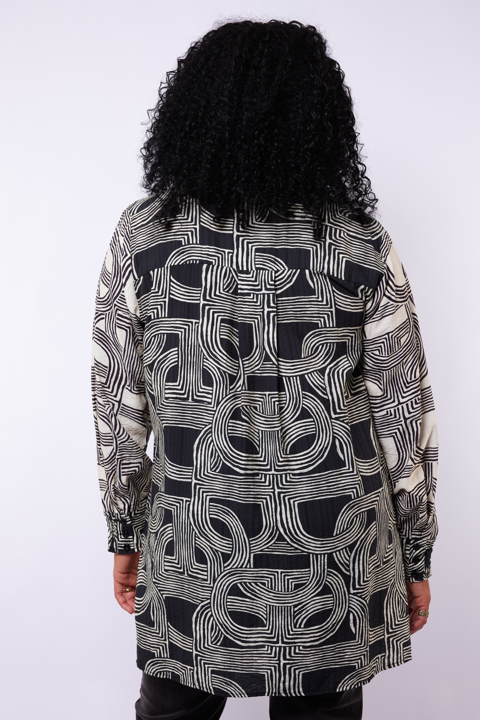 De Exxcellent Sally tuniek is een echte blikvanger binnen de plus size collectie van Bagoes. De tuniek heeft een grafische all-over print die direct opvalt en zorgt voor een moderne, verzorgde uitstraling. De print loopt over het hele model en geeft de tuniek een krachtig maar rustig karakter.
