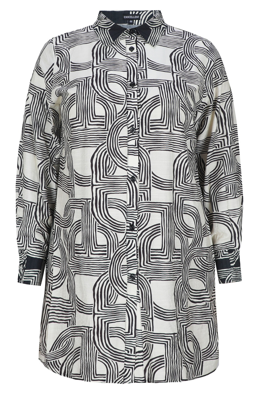 De rechte pasvorm valt soepel om het lichaam en draagt comfortabel bij een maatje meer. De contrasterende kraag en manchetten zorgen voor een verfijnd detail en geven de Exxcellent Sally tuniek net dat beetje extra. Door de rechte snit blijft het model elegant en makkelijk te combineren.