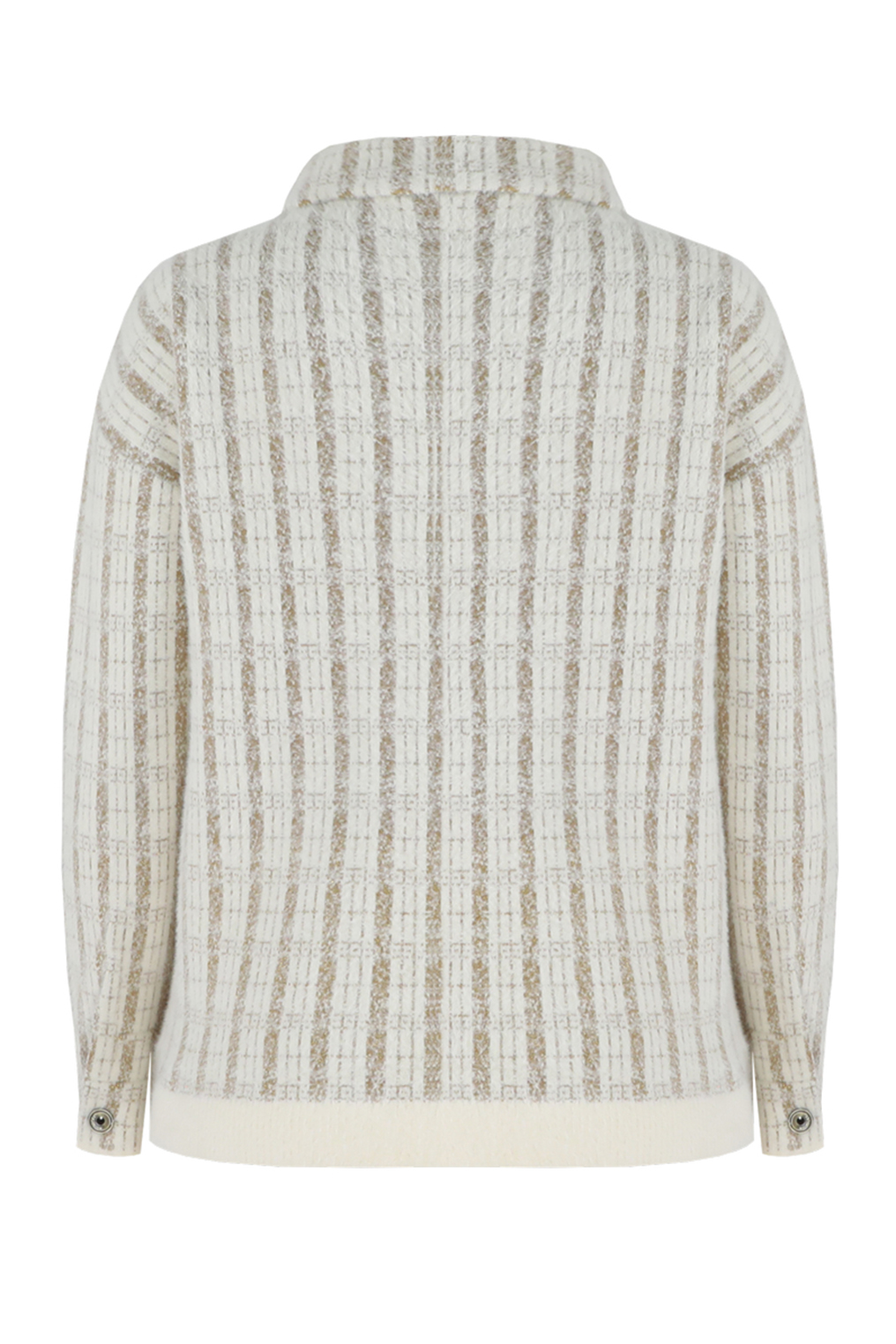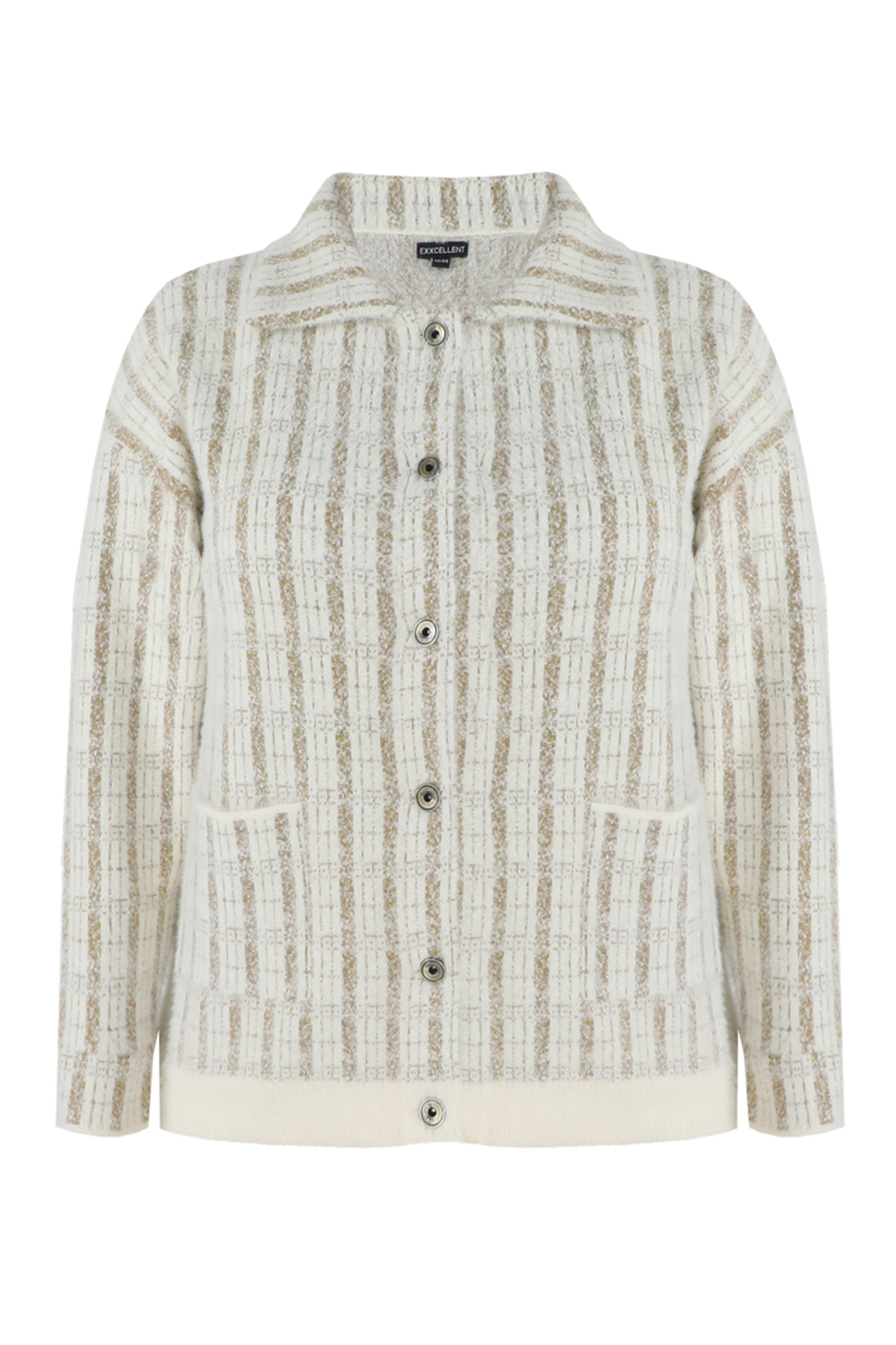 Exxcellent vest Melany is een vlot korter model. Hij heeft een ingebreid patroon, sluit met knopen en heeft een kraagje. Het model combineert hierbij de broek 25WZE22. Het breisel voelt super zacht en comfortabel aan, heerlijk voor het najaar.