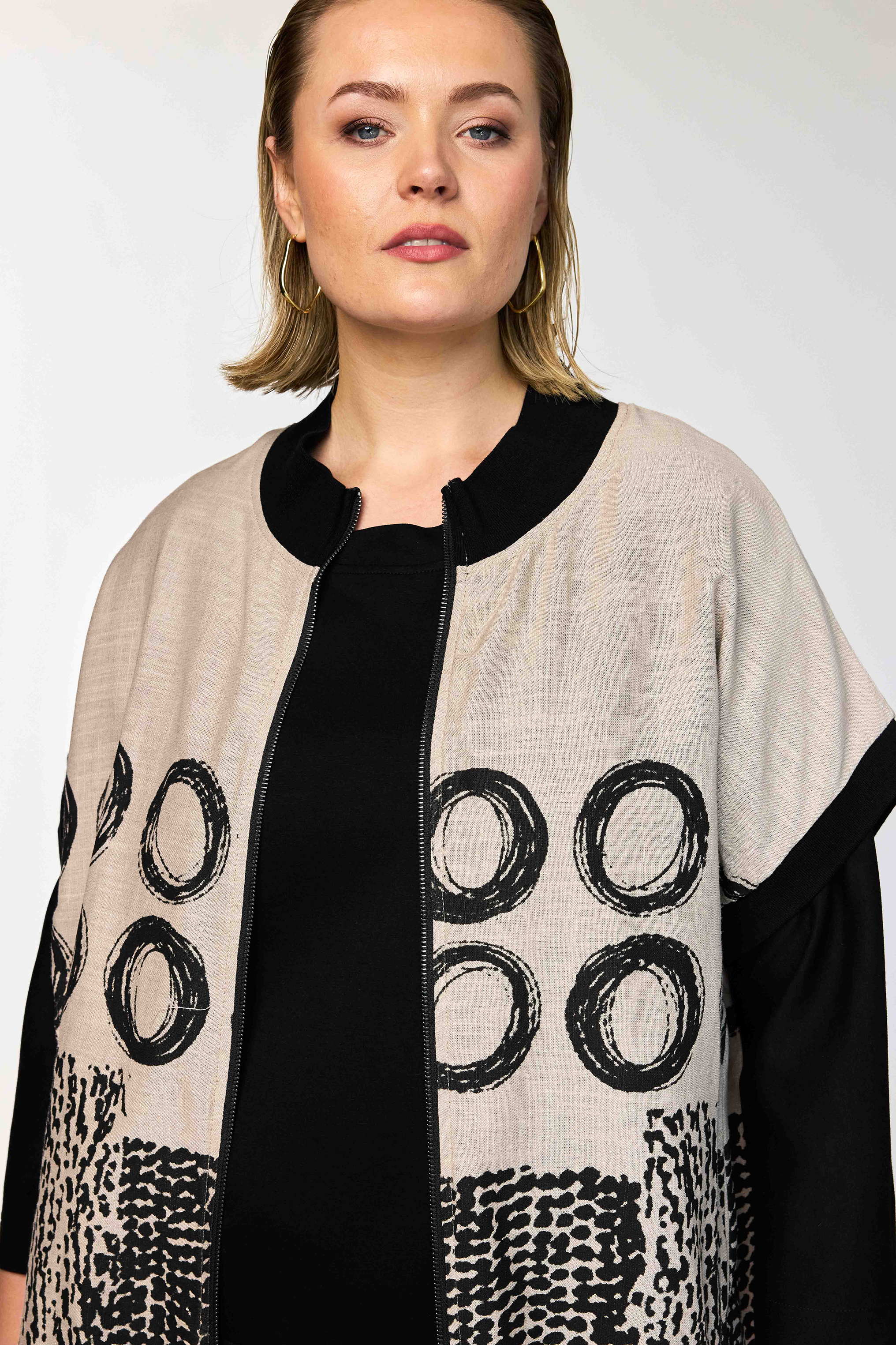 De Nynne G262205 van is een lichte en comfortabele bodywarmer met een grafische en rustige uitstraling. Dit model heeft een rechte en ruime pasvorm, waardoor het zacht om het lichaam valt. De snit is geschikt om in laagjes te dragen en past perfect binnen de collectie. Voor vrouwen die kiezen voor plus size en grote maten vesten is dit een veelzijdig item.