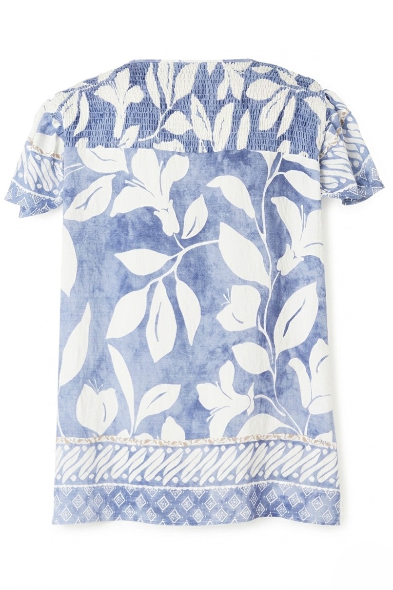 De Juliana blouse van het merk Gozzip is een luchtige en comfortabele blouse met een blauw/witte allover print. De blouse valt soepel langs het lichaam en heeft een flatterende pasvorm die mooi aansluit bij jouw vormen.
