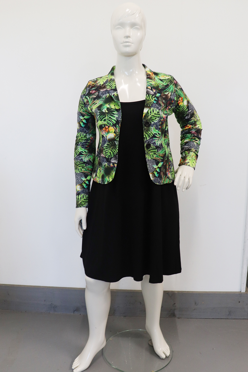 Pittig kort model blazer van Ophilia gemaakt in een iets zwaardere kwaliteit tricot. Een korter model blazers is super te combineren bij een van de vele tunieken en jurken uit de Ophilia collectie, dit kleed mooi af.