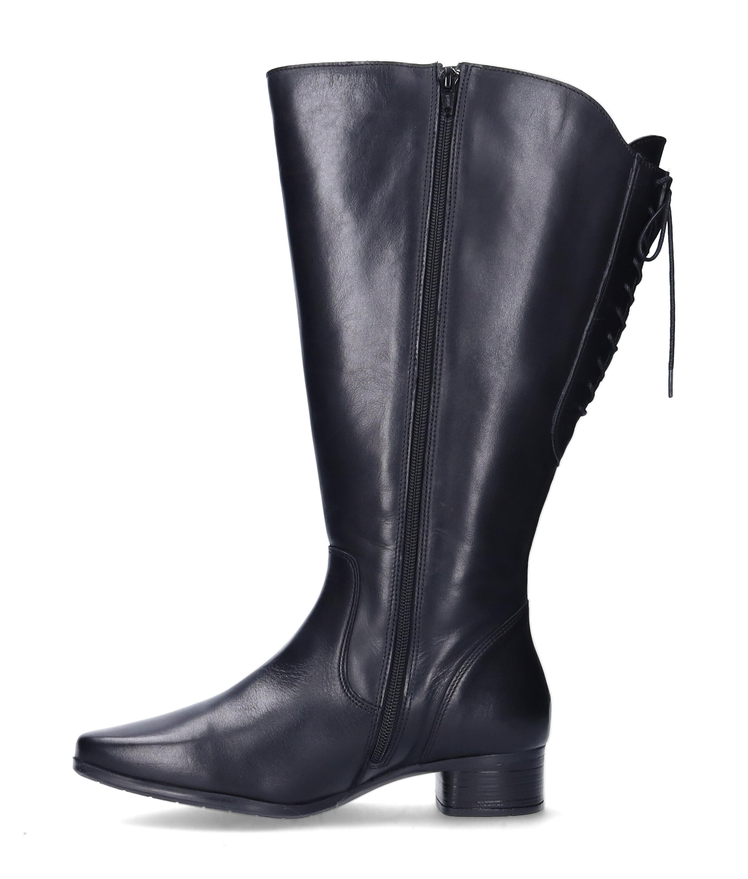 Model Cardiff van JJ Footwear is gemaakt in een met de hand gepoetste kwaliteit leer. Aan de achterkant van de schacht zit een veter pas, hiermee kun je de kuitwijdte aanpassen. De laars heeft een elegante hak van 3,5 cm en een anti slip zool en uitneembaar voetbed.