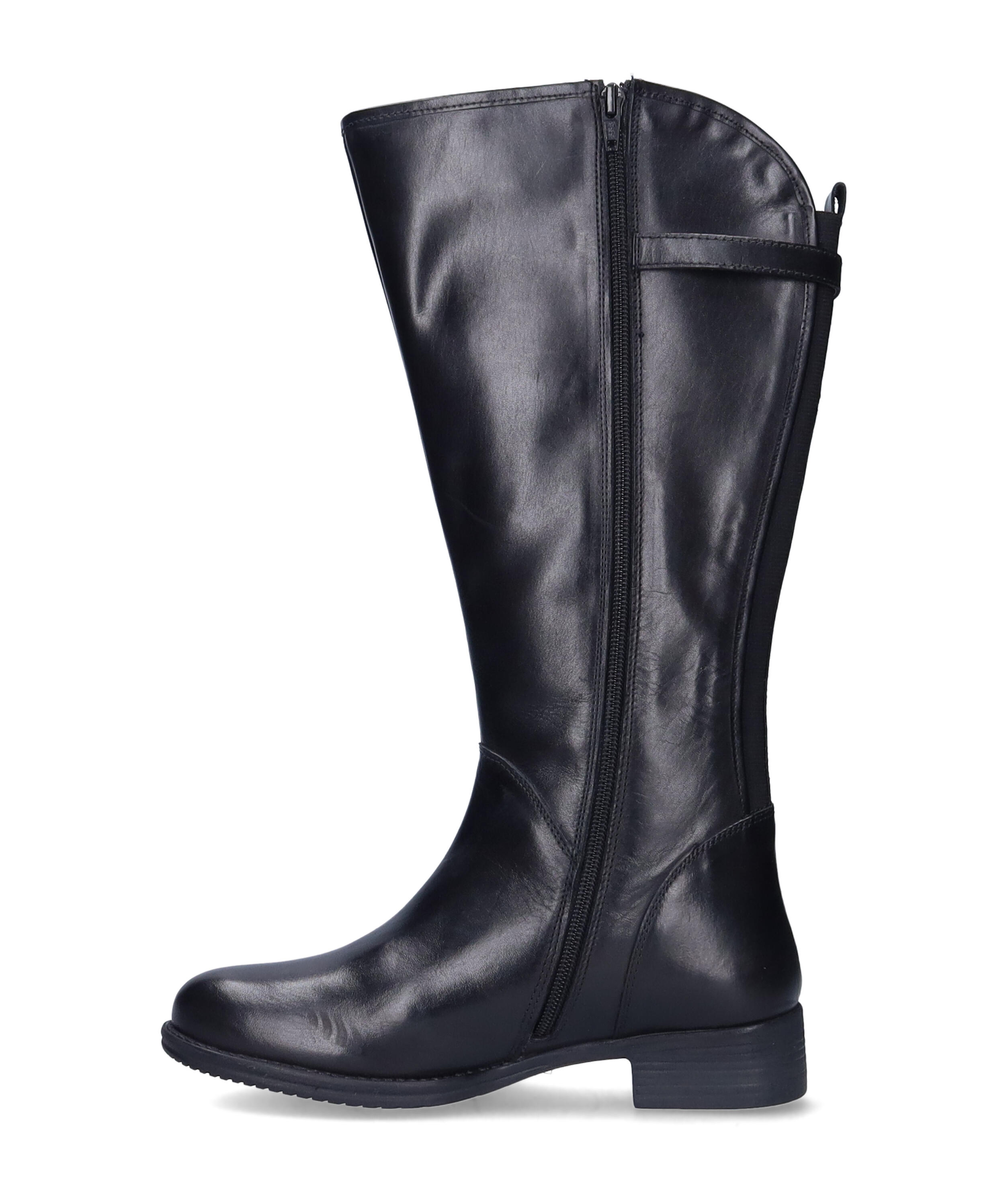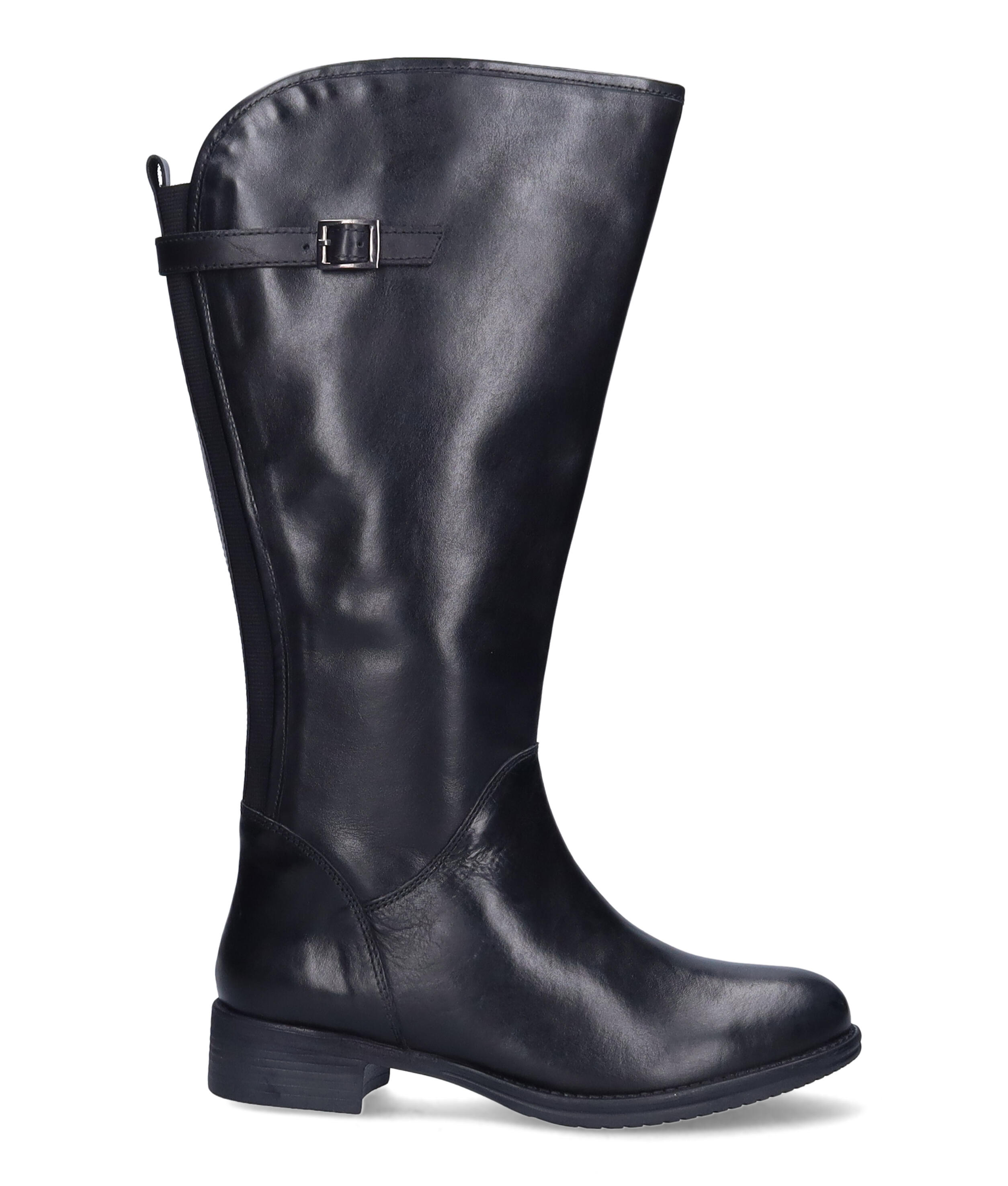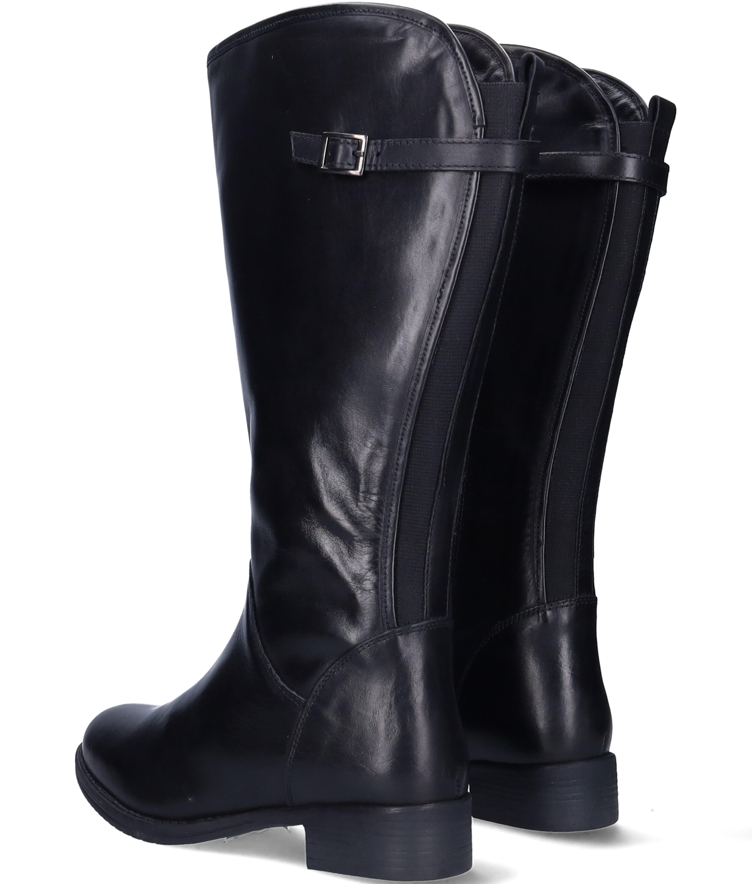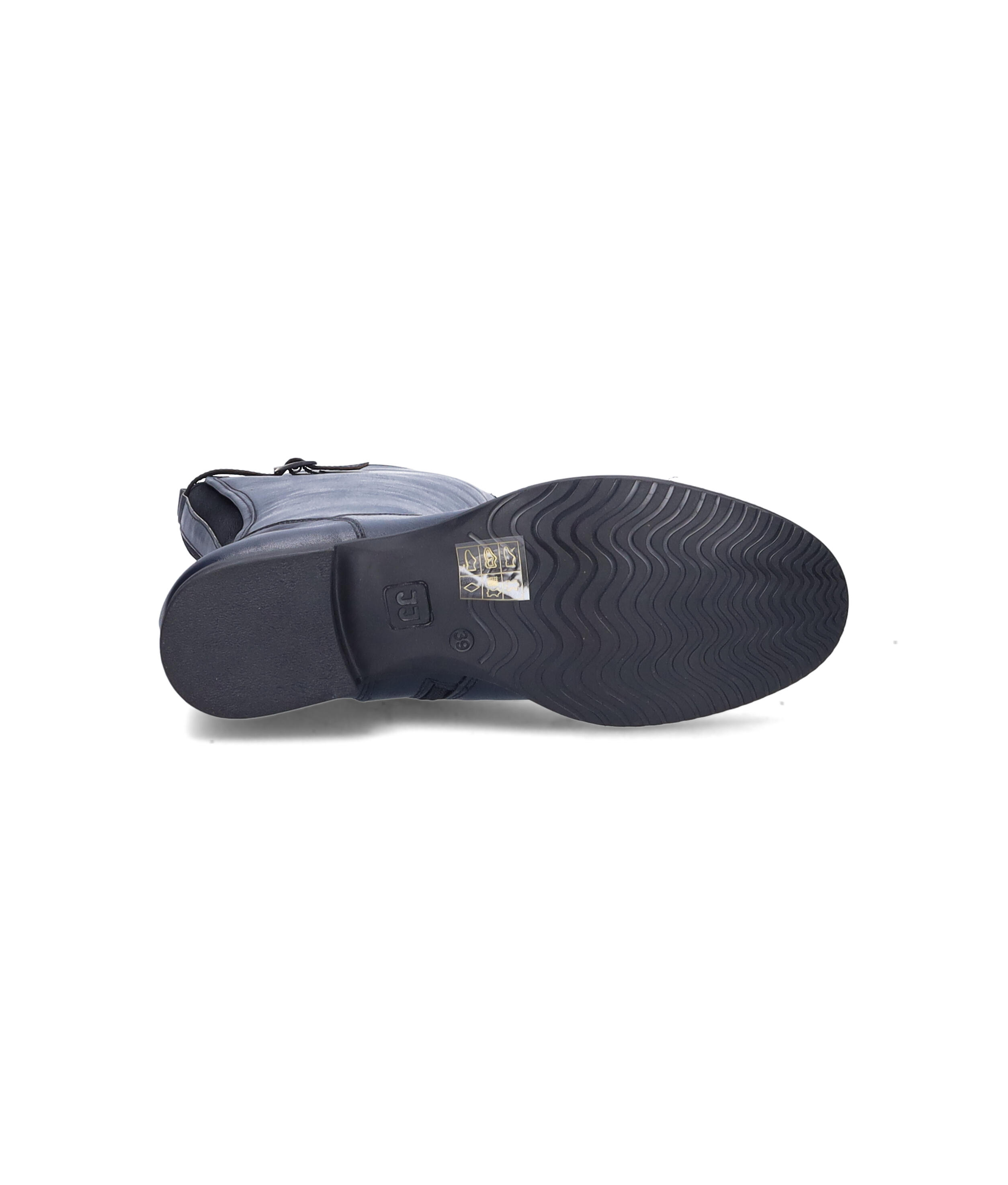 Goede basis laars gemaakt in een mooie gladde leer kwaliteit van JJ Footwear. Midden achter zit een elastieken inzet voor iets meer kuit vorm. Aan de binnen kant een rits, de laars heeft uitneembare zolen en is geheel gevoerd. Aan de bovenkant van de schacht zit een klein riempje. Dit model heeft een flexibele anti slip zool.