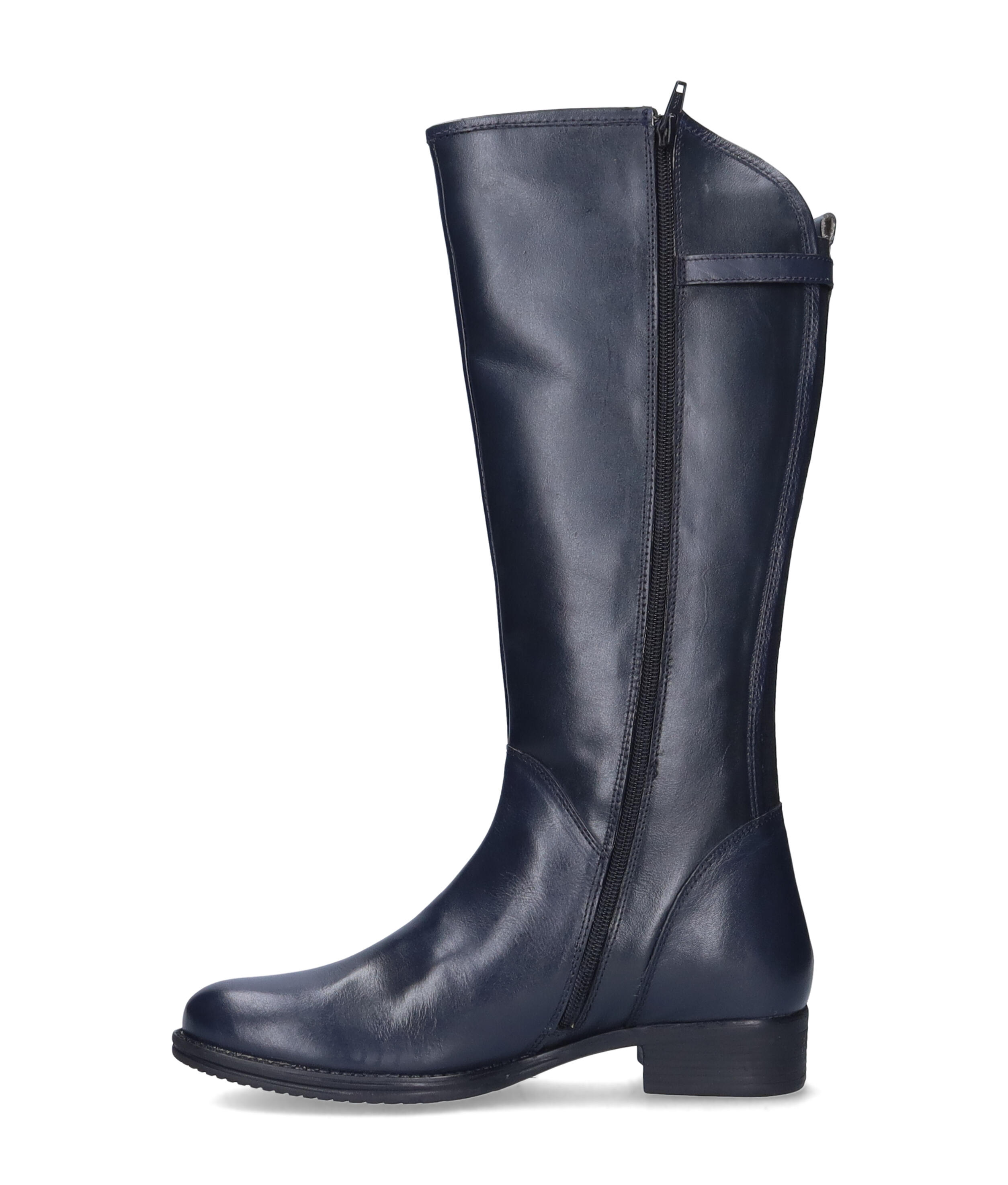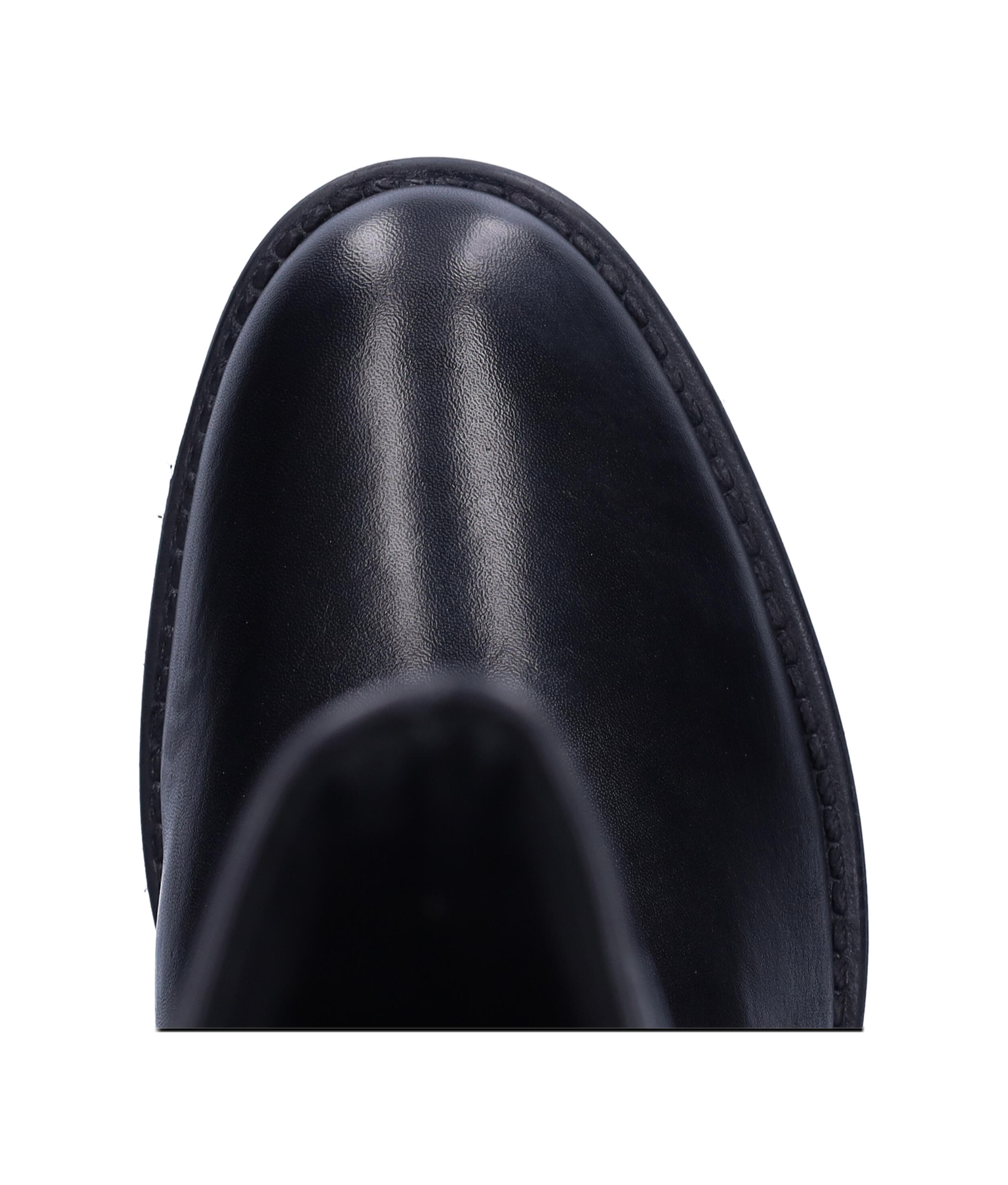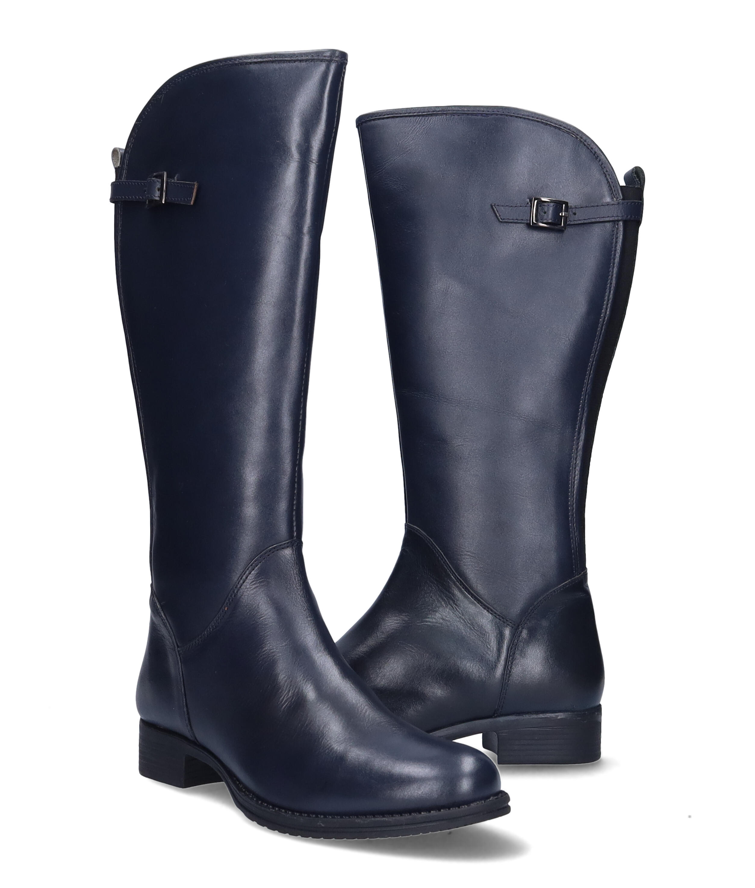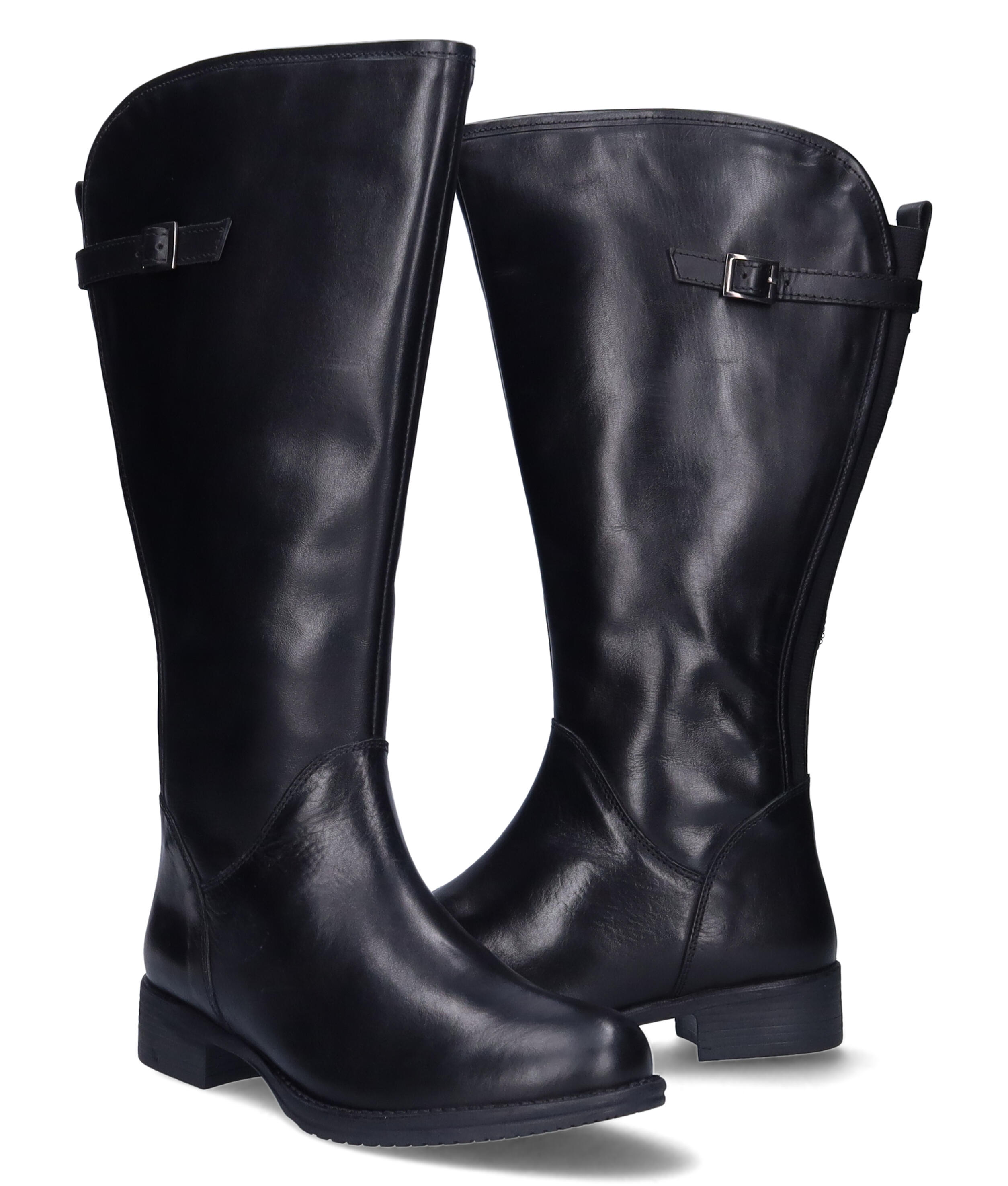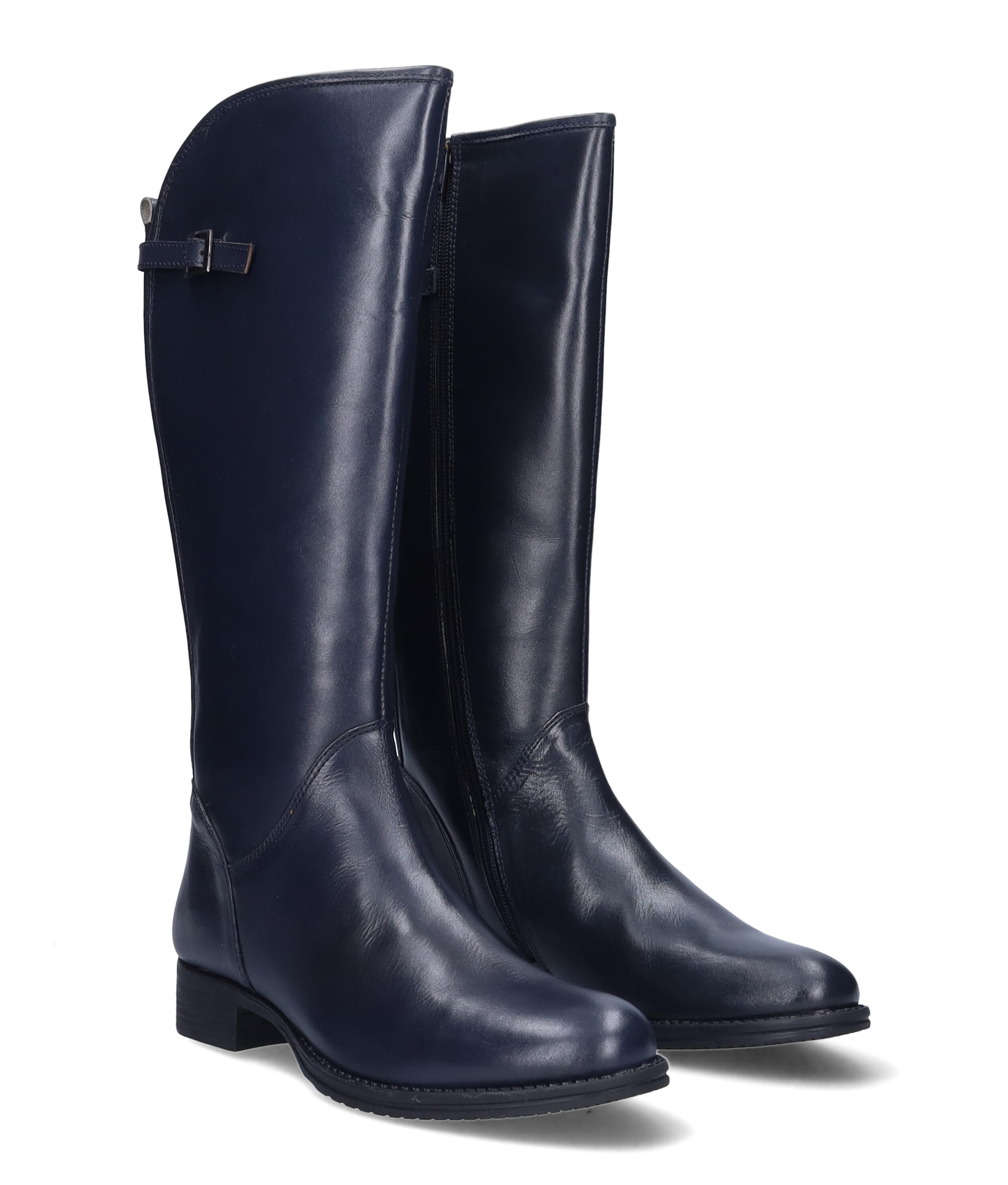 Goede basis laars gemaakt in een mooie gladde leer kwaliteit van JJ Footwear. Midden achter zit een elastieken inzet voor iets meer kuit vorm. Aan de binnen kant een rits, de laars heeft uitneembare zolen en is geheel gevoerd. Aan de bovenkant van de schacht zit een klein riempje. Dit model heeft een flexibele anti slip zool.
