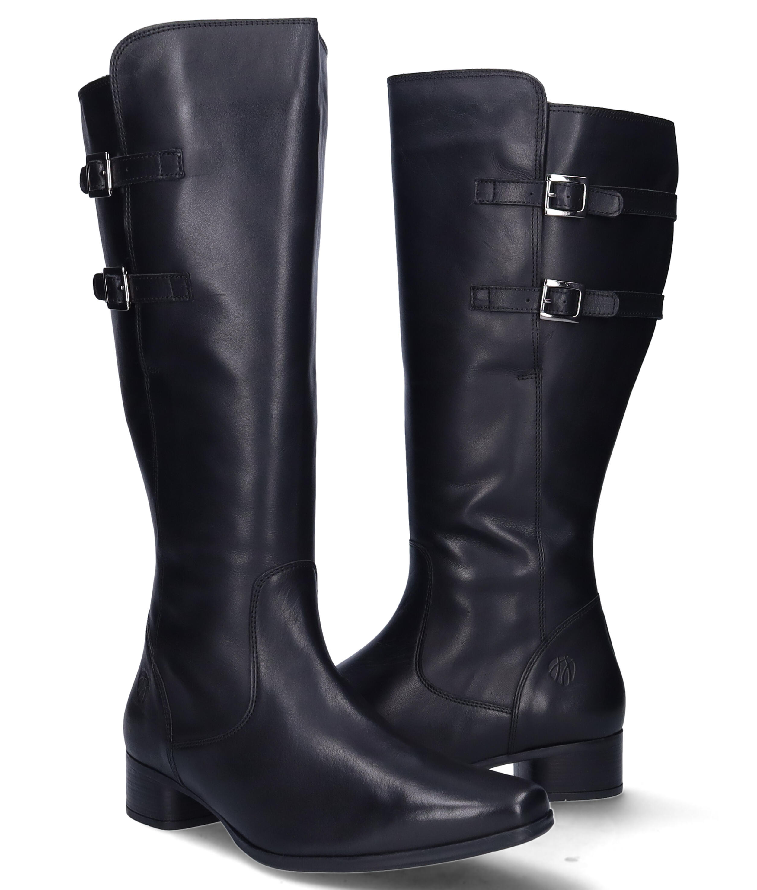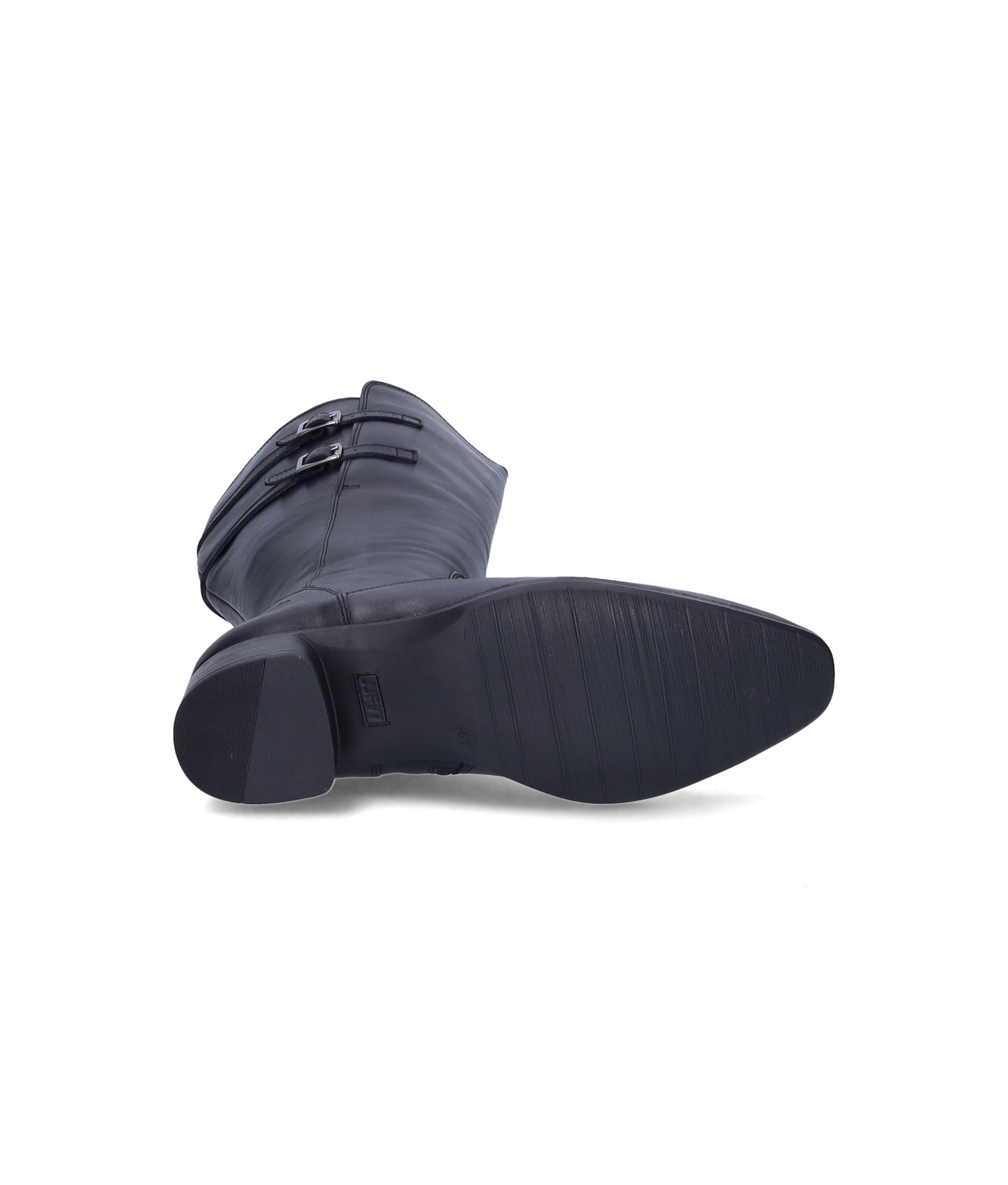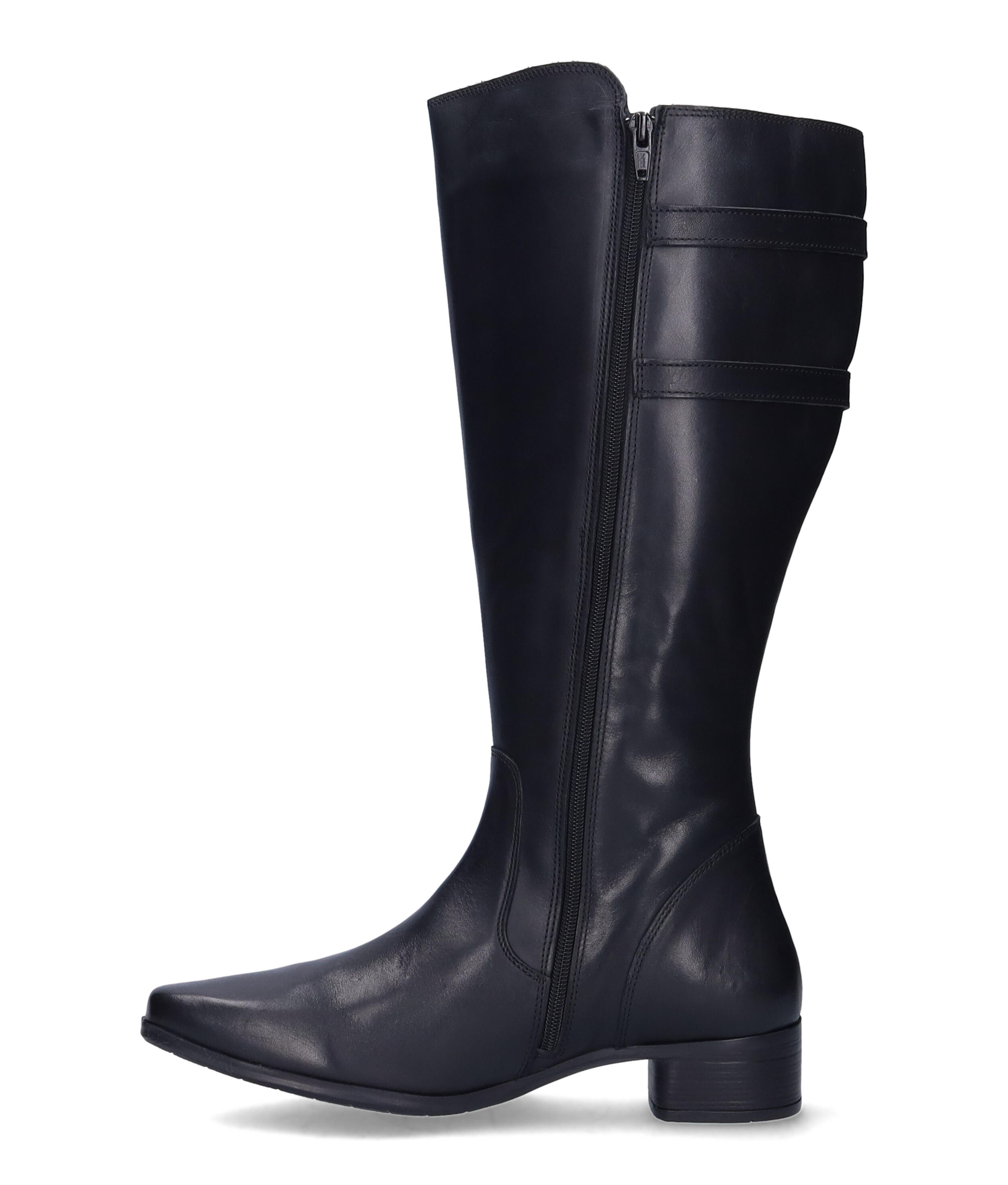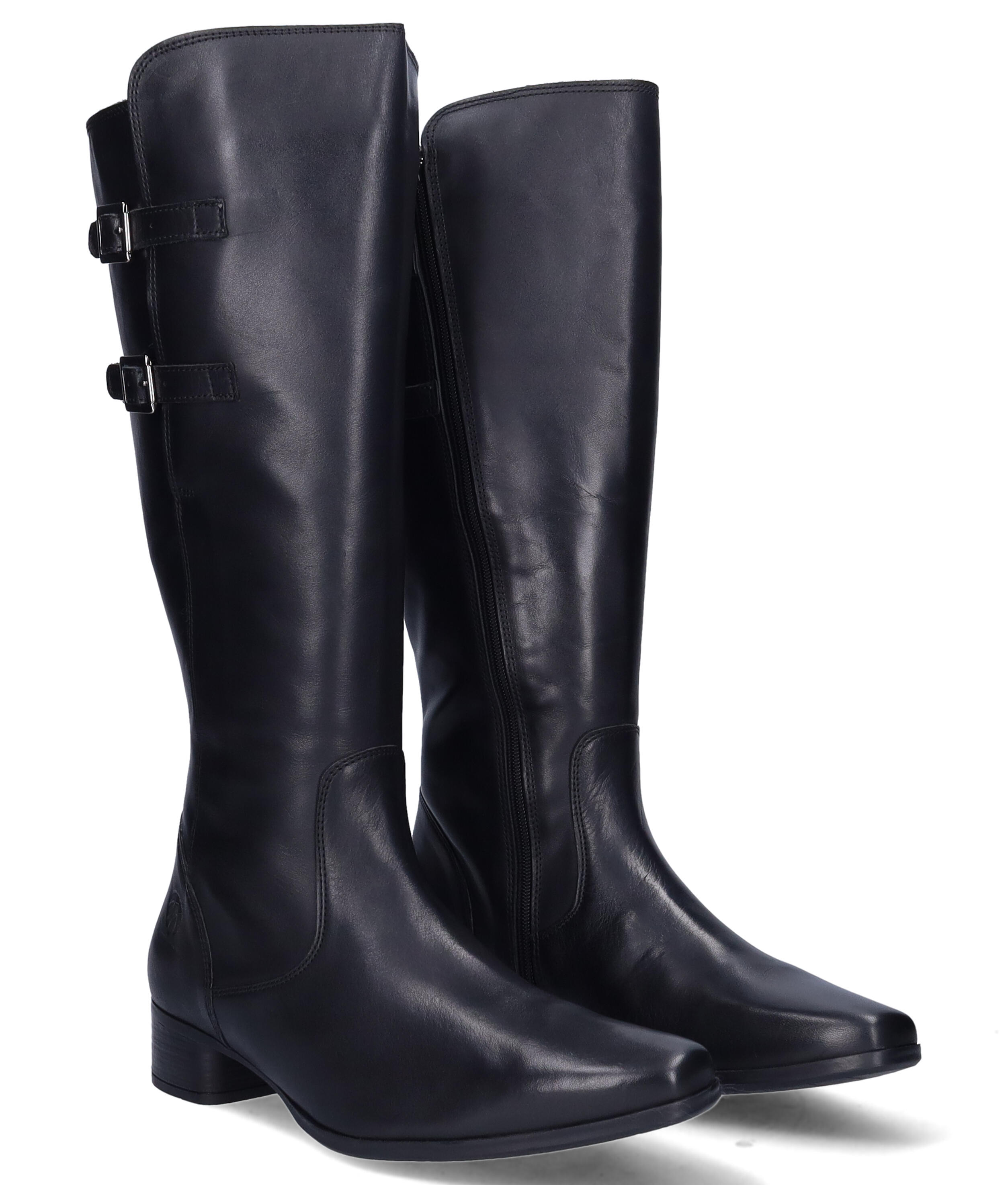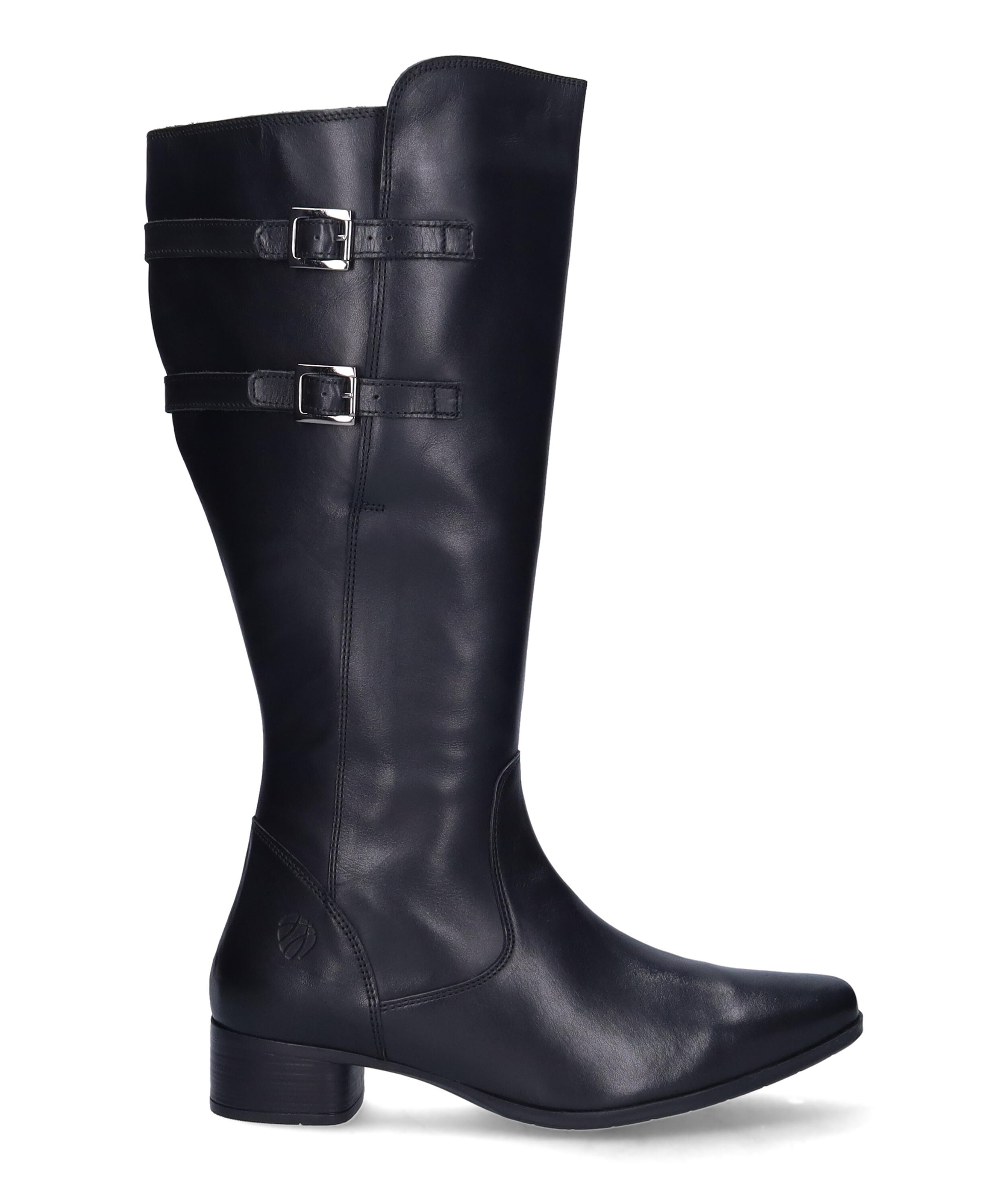 Leuk model laars van JJ Footwear met aan de zijkant 2 riempjes, waarmee je de wijdte van de schacht nog een beetje kunt aanpassen. Aan de binnenkant van de schacht zit een rits sluiting. De laars heeft een fijne hak en de voet loopt iets spits toe. Deze leren laars is geheel gevoerd.