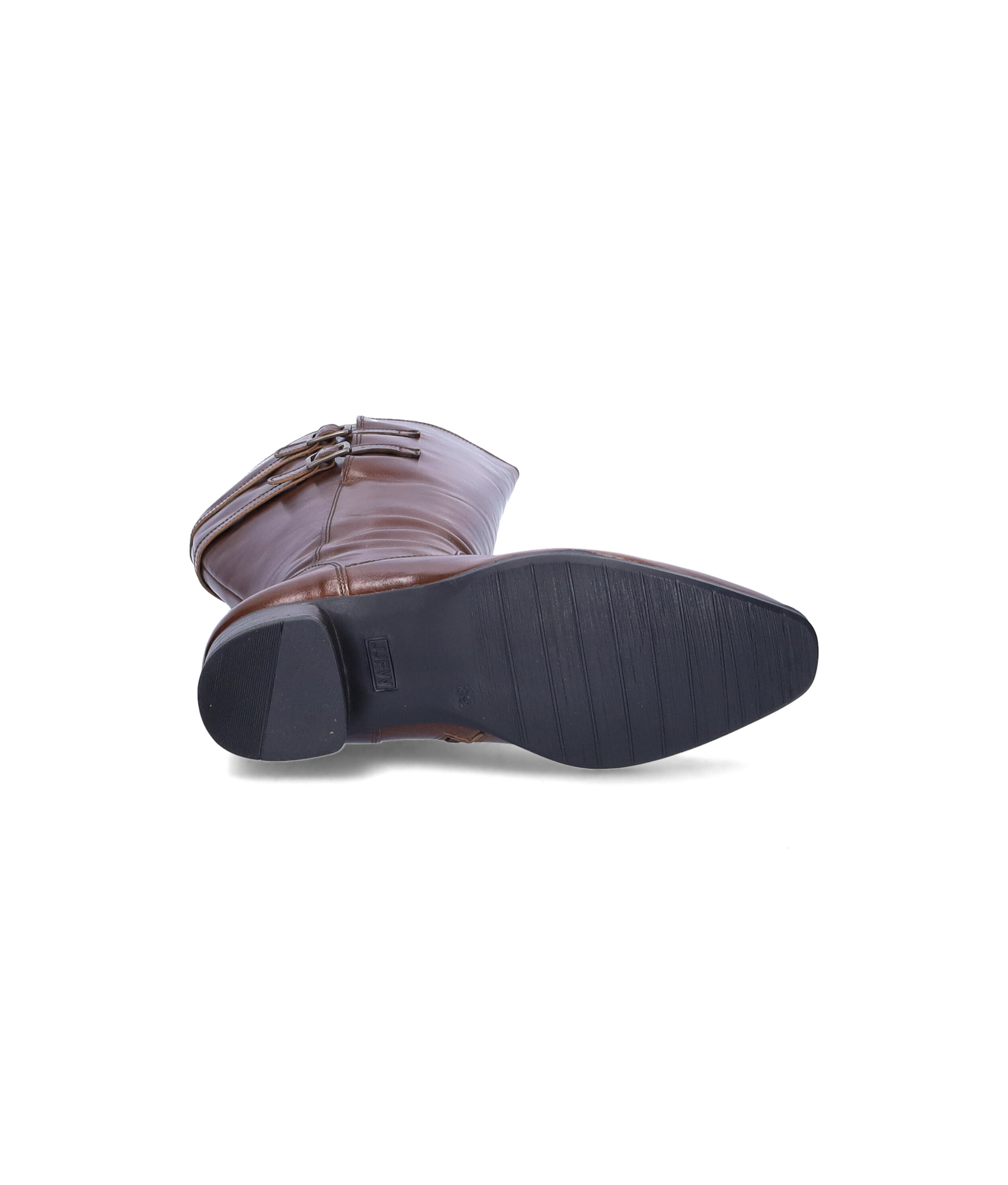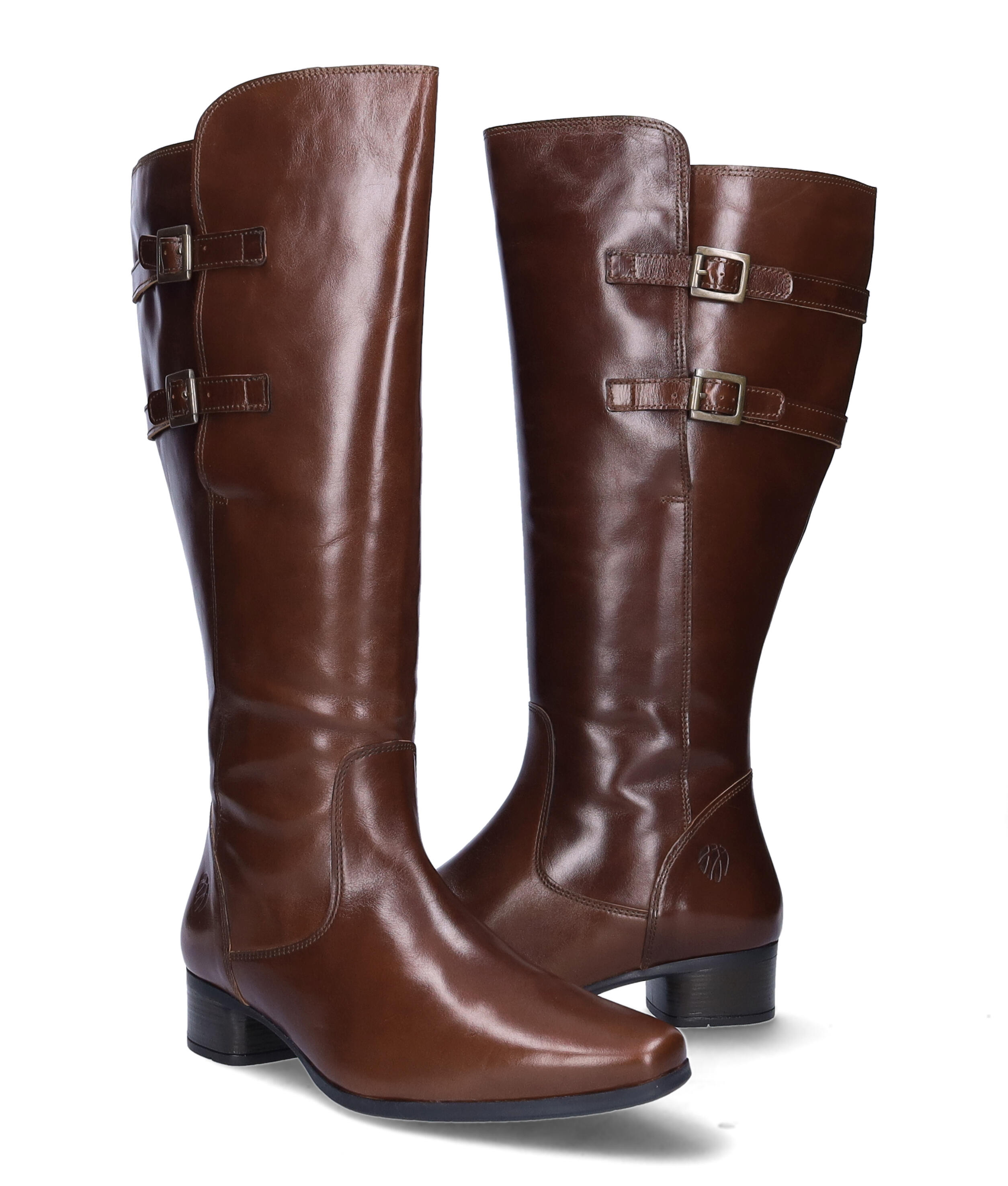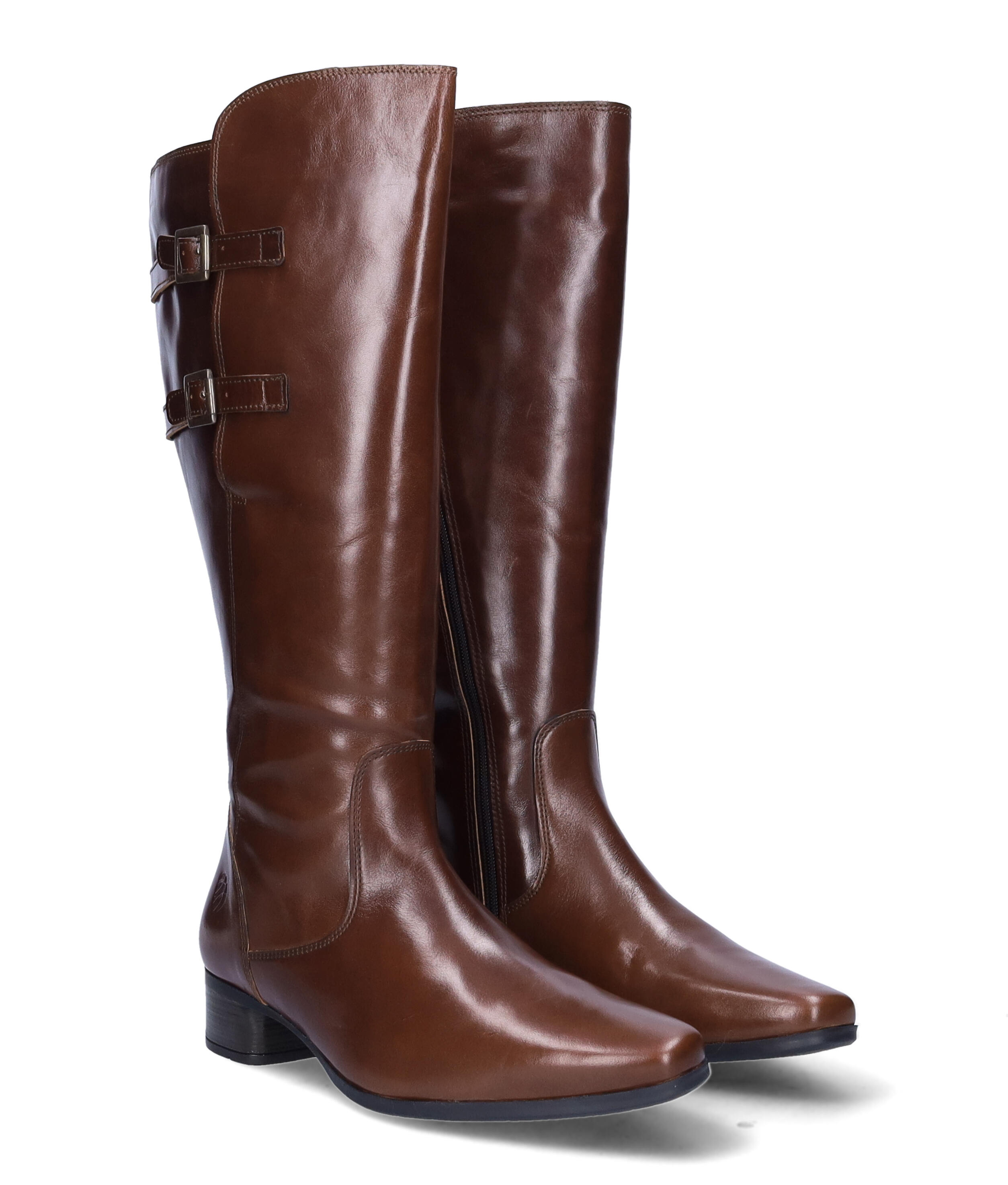 Leuk model laars van JJ Footwear met aan de zijkant 2 riempjes, waarmee je de wijdte van de schacht nog een beetje kunt aanpassen. Aan de binnenkant van de schacht zit een rits sluiting. De laars heeft een fijne hak en de voet loopt iets spits toe. Deze leren laars is geheel gevoerd.