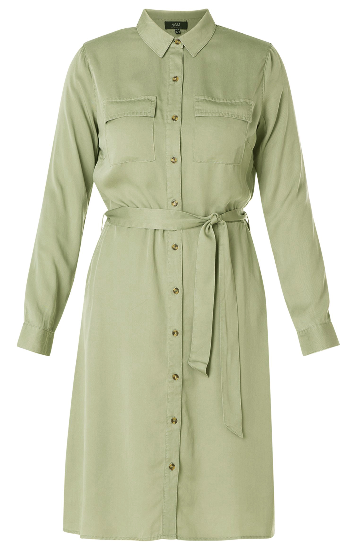 Utility wear is de trend voor dit voorjaar. Yesta heeft hier op ingespeeld met deze te gekke jurk. De jurk is gemaakt in een mooie Lyocell met super zachte optiek. De jurk heeft een vlotte look door de zakken en bruine knoopjes. De strikceintuur in de taille geeft de jurk net even die vrouwelijke touch.
