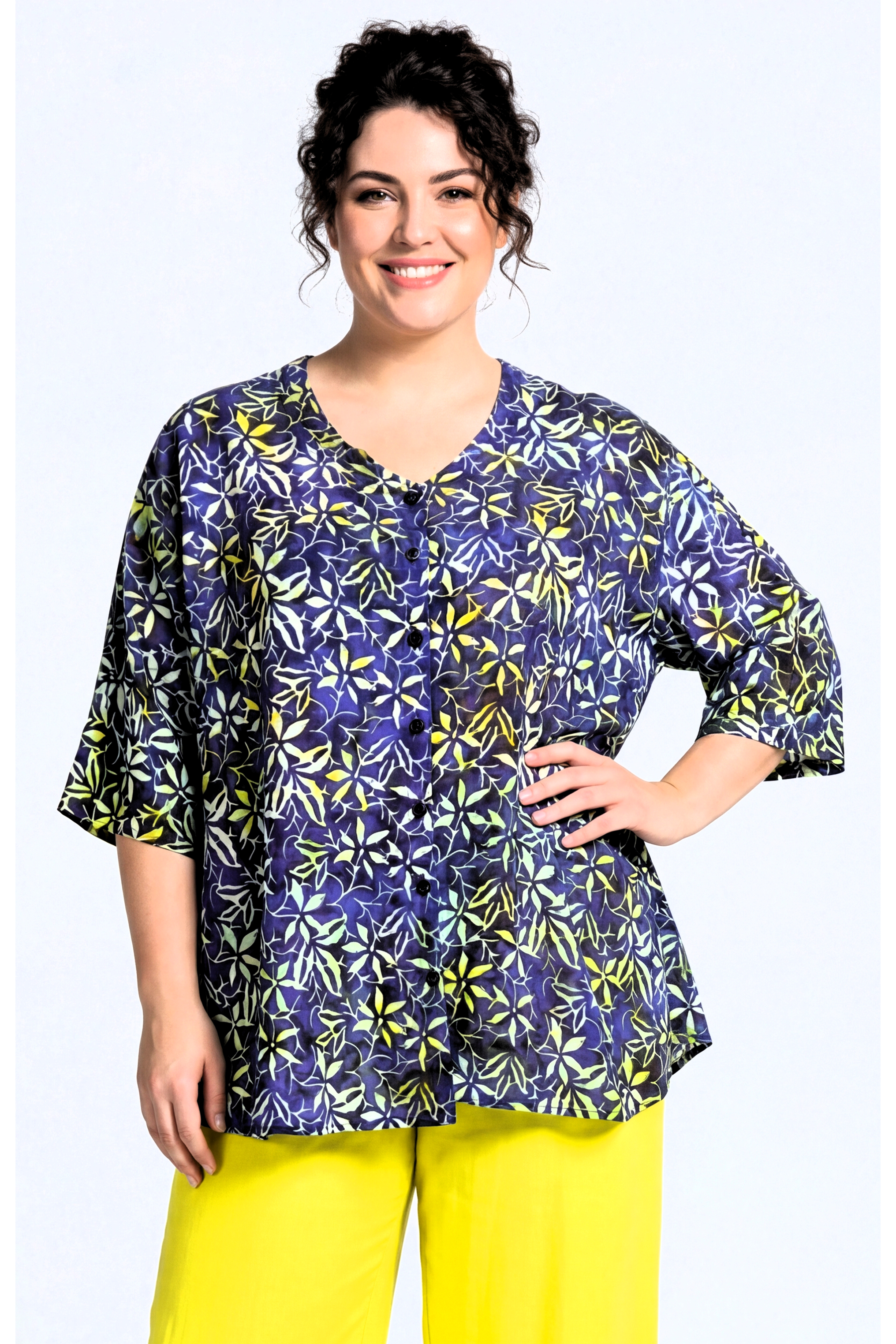 Luna blouse Dallas 22 | dallas5424blue/yell42-52 one