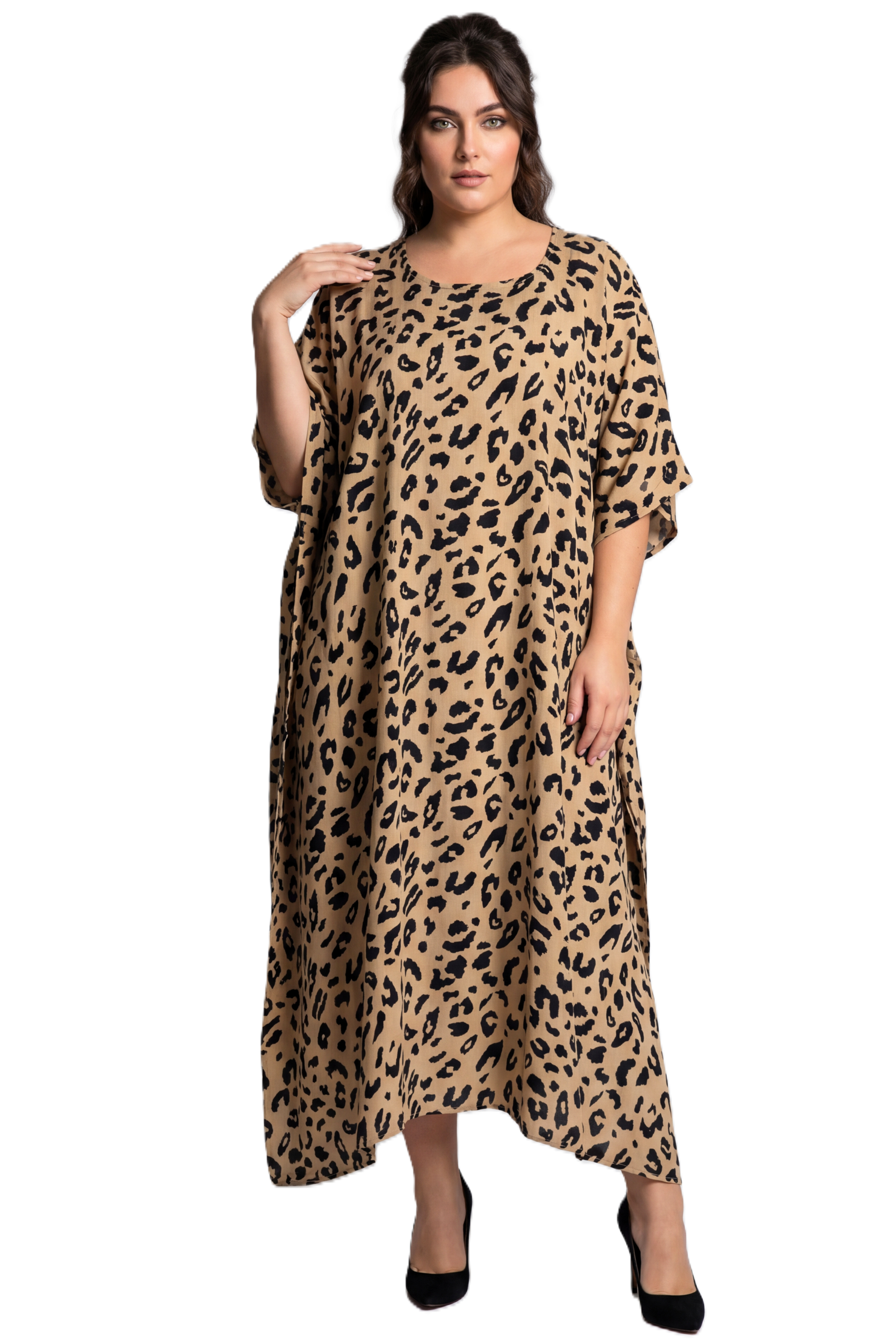 De Luna kaftan Classic jurk van Luna heeft een opvallende diverse printen. Door het wijde model valt de jurk luchtig om het lichaam. Dit maakt deze kaftan jurk een fijne keuze voor vrouwen die houden van comfortabele plus size kleding met een modieuze uitstraling. De ruime mouwen vallen los langs de armen en geven de jurk een speelse en luchtige look.