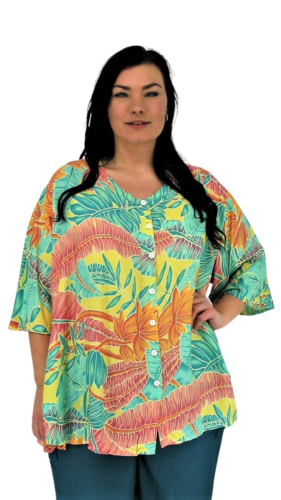 Titel: Luna Serena jasje Emma – stijlvol jasje in batik viscose voor dames met een maatje meer