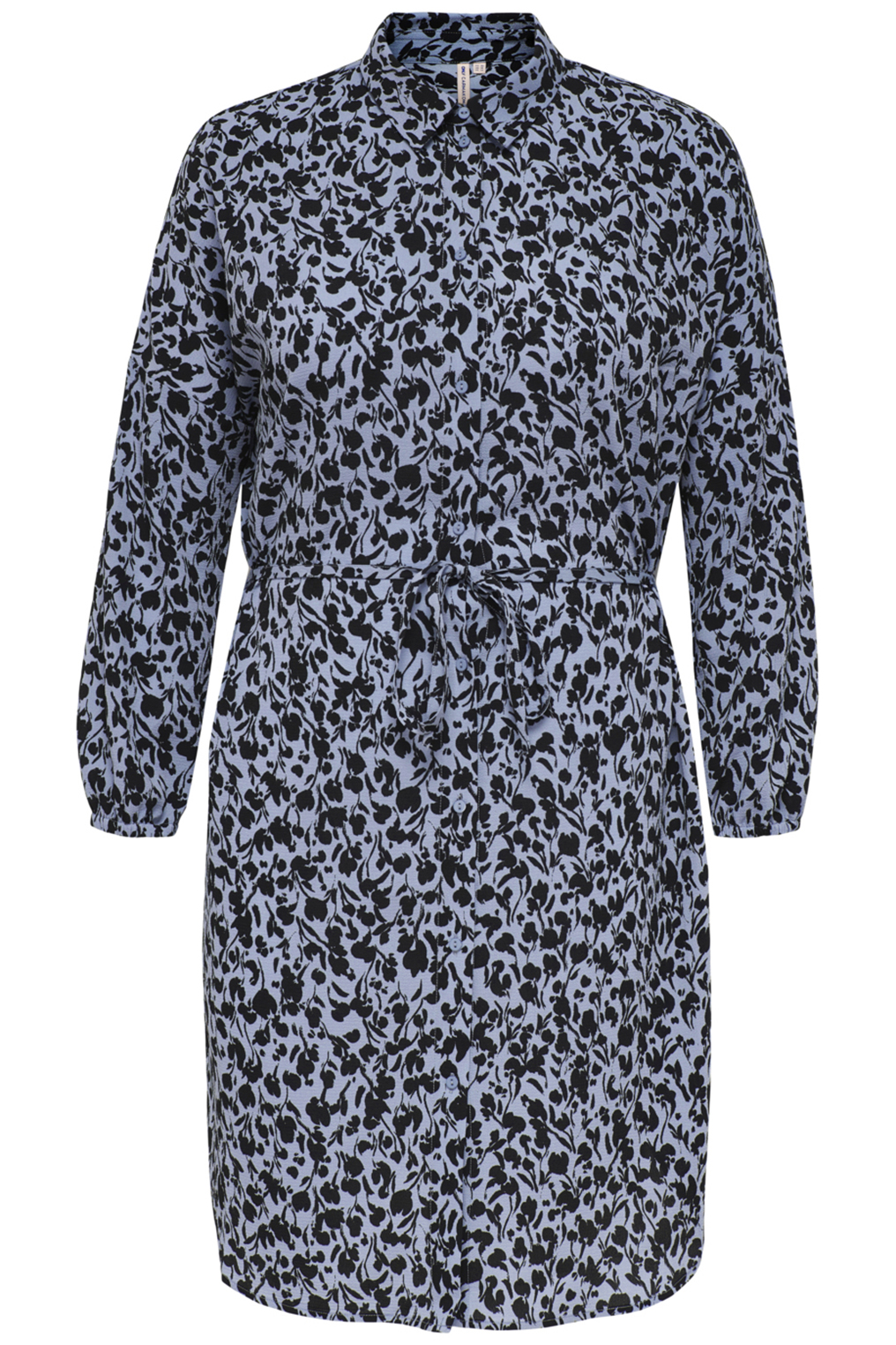Jurk Carluxjoy van ONLY Carmakoma is een blouse jurk model. Hij heeft een kleine kraagje, sluit met knoopjes en heeft lange mouwen met een manchet. In de taille zit een strikceintuur. De panden zijn afgerond, bij maat 50 is hij 111 cm lang. Hij is gemaakt in een crepe stof die fijn draagt en makkelijk in onderhoud.