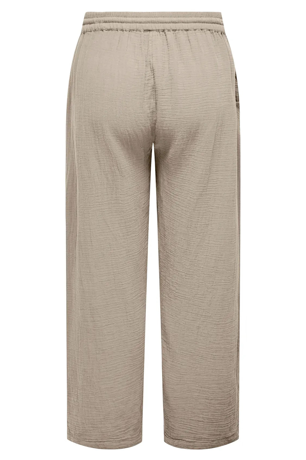 De CARTHYRA broek van Only Carmakoma is zo’n item waar comfort en stijl perfect samenkomen. De broek is uitgevoerd in mousseline in een mooie beige tint en gemaakt van 100% organisch katoen – ademend, zacht en een fijne, bewuste keuze.