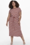 Deze jurk van ONLY Carmakoma wil je dragen! Hij zit super comfortabel. De jurk heeft een ronde hals en korte mouwen. In de lagere rughals zit een kruisbandje. In de taille zit een strikceintuur in een tunnel en aan de zijkanten heeft de jurk een split. De maxi jurk heeft een gestreept patroon. De mooiste jurken vindt je in de categorie grote maten jurken.