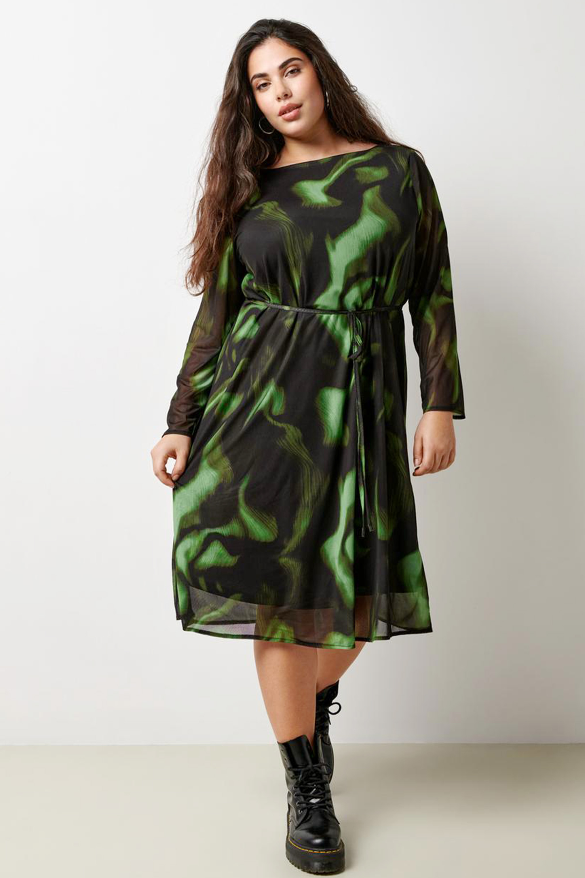 ONLY Camakoma ECO jurk FOREST is gemaakt in een mousse tricot, deze stof heeft veel rek en is doorschijnend. De panden zijn gevoerd en de lange mouwen schijnen door. Hij heeft een rechtvallende hals en in de taille zit een smalle strikceintuur. In dezelfde print is er ook nog een blouse 15334226. Combineer met een mooie panty van Cette of Pamela Mann.