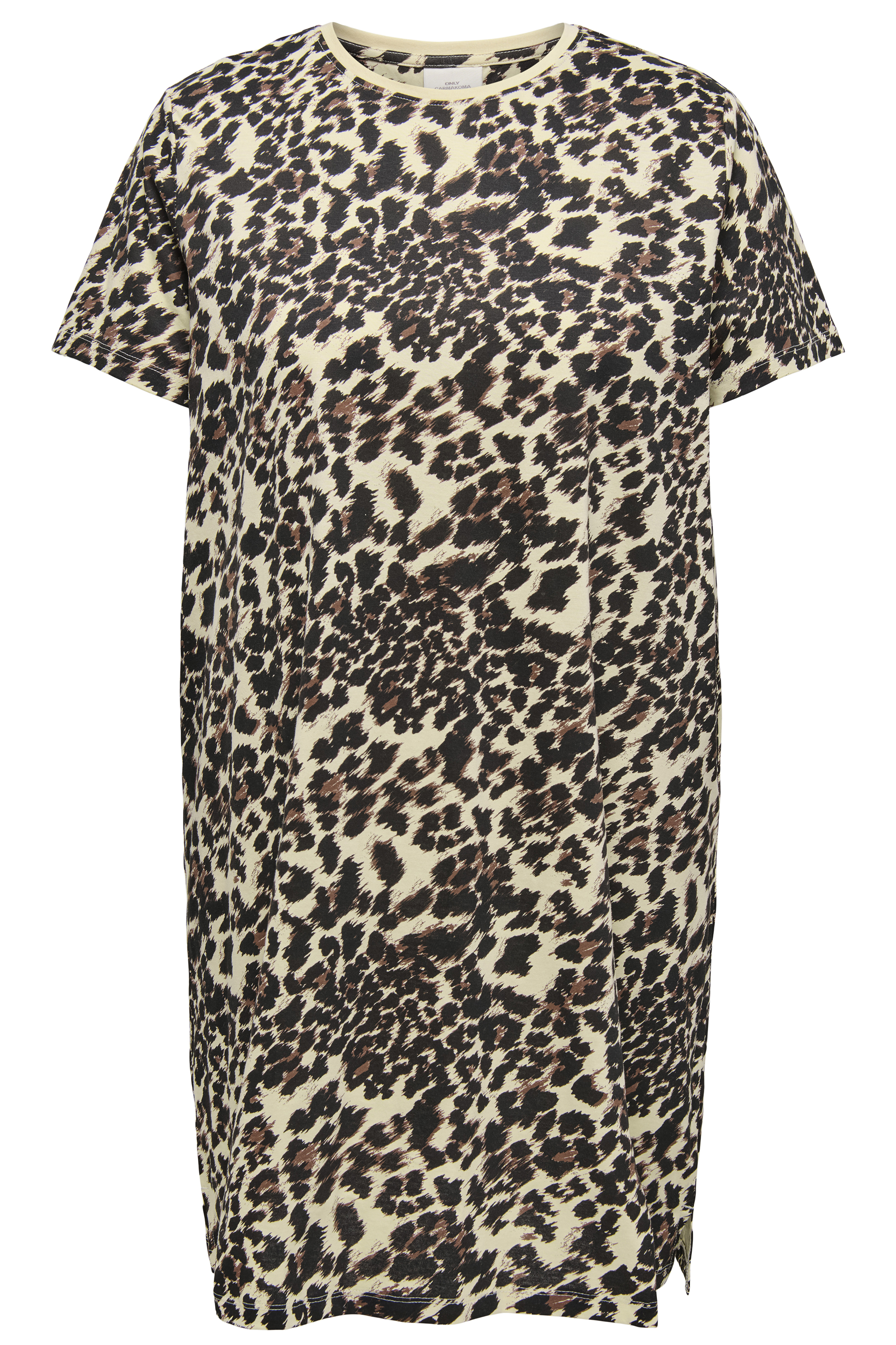 ONLY Carmakoma ECO midi jurk met dierenprint is eigenlijk een verlengd t shirt model. Hij heeft een rechte pasvorm, ronde hals en korte mouwen. Leuk om te combineren met een vest of kort leatherlook jack.