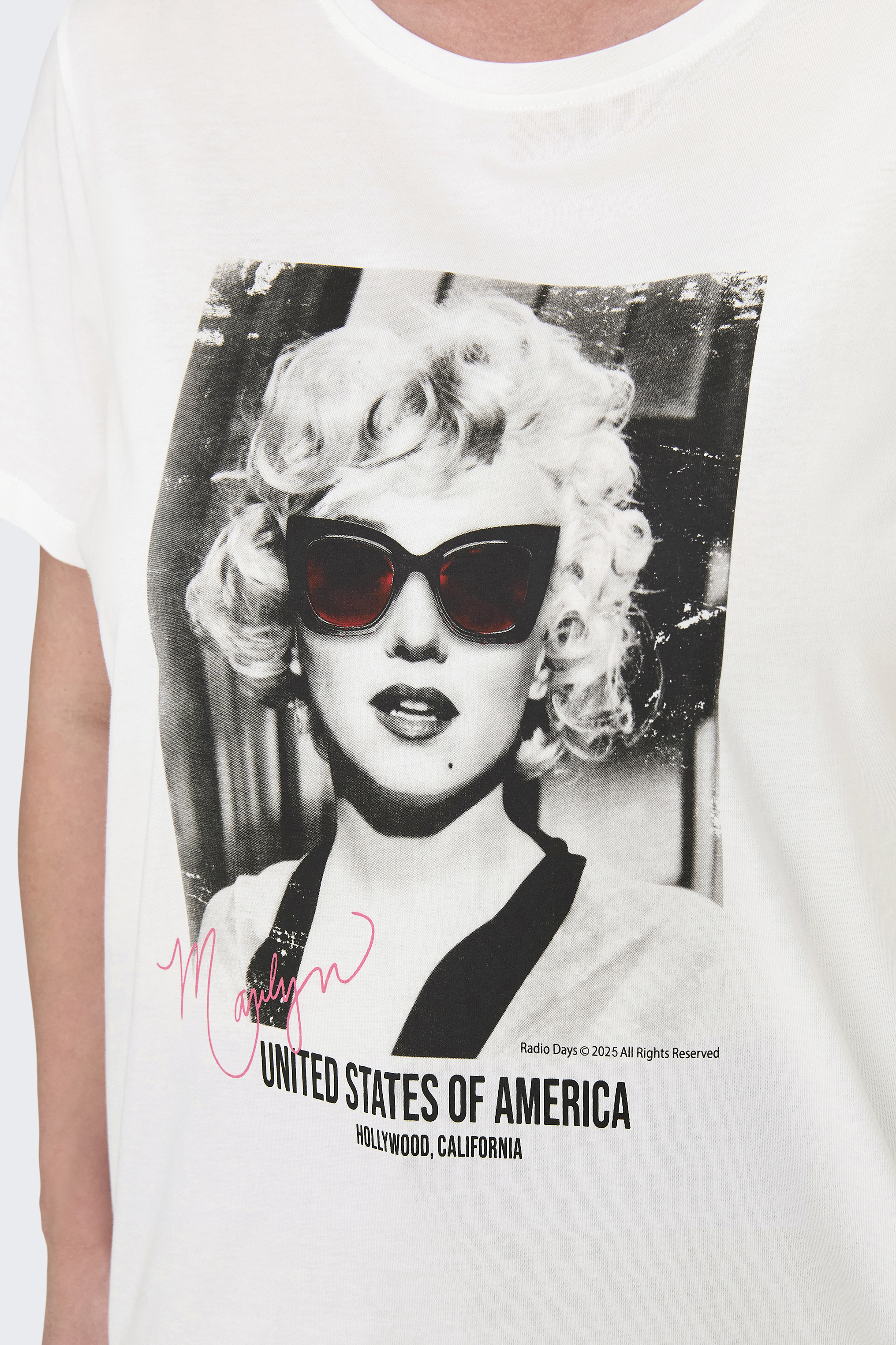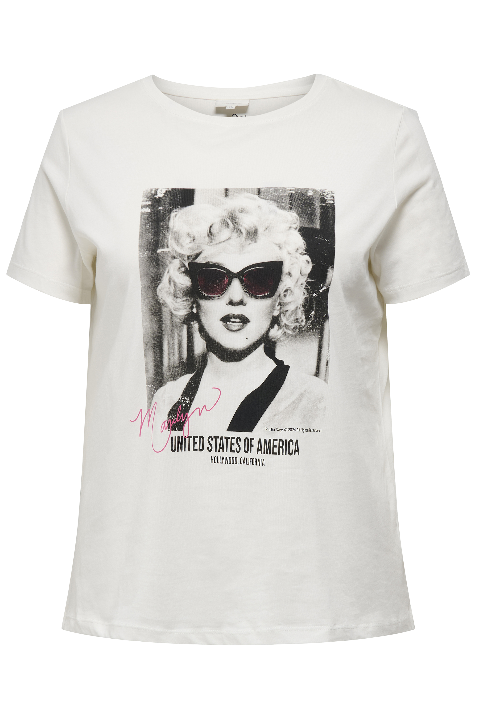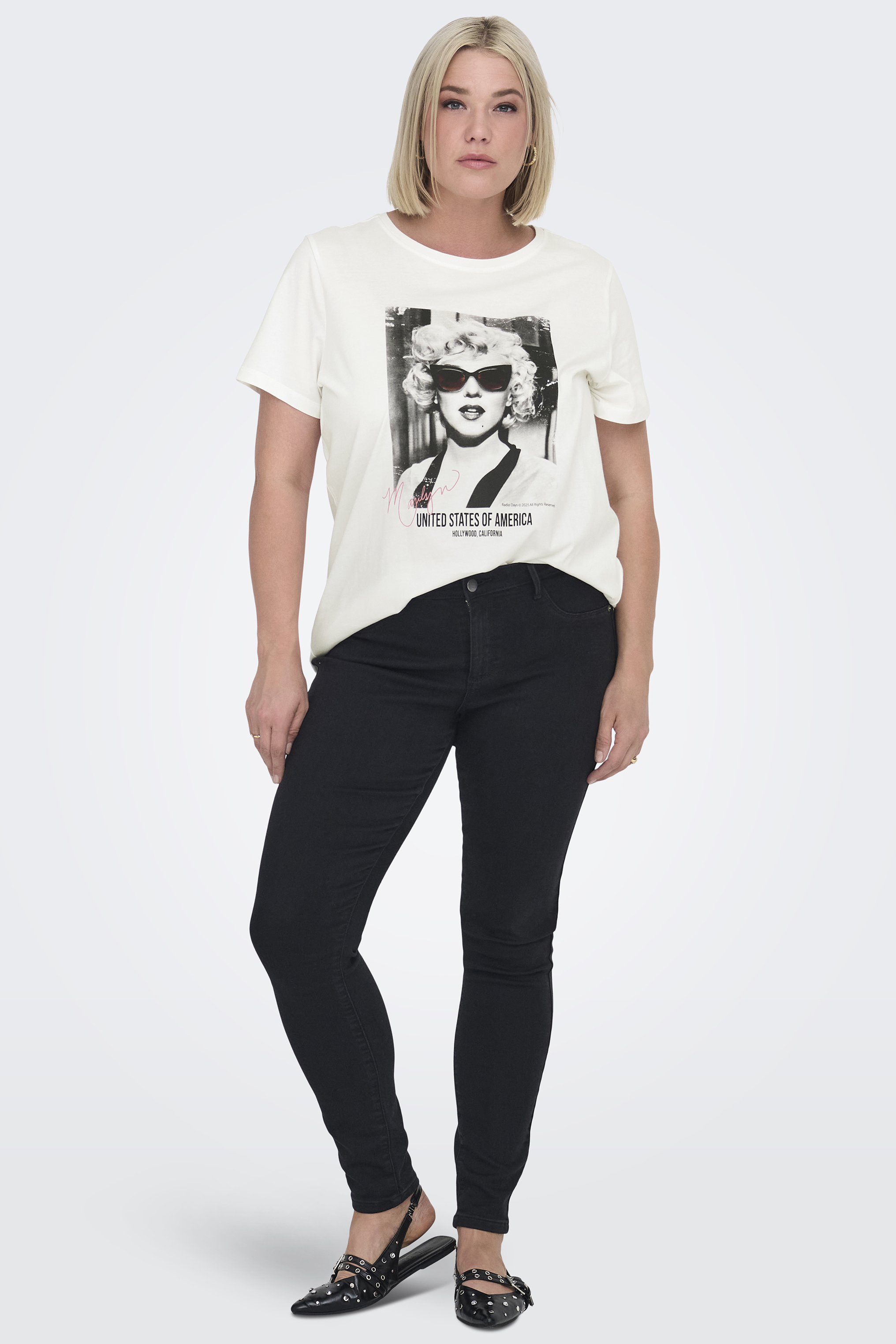ONLY Carmakoma ECO shirt CARNEWMARILYN is een basis model met ronde hals , korte mouw en normale pasvorm. Hij heeft 2 verschillende opdrukken op de voorkant met Marilyn Monroe. Natuurlijk draag je zo'n shirt bij een van de geweldige jeans van Only.