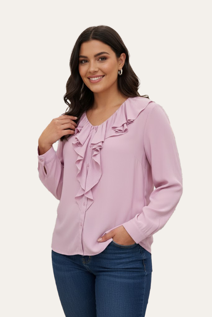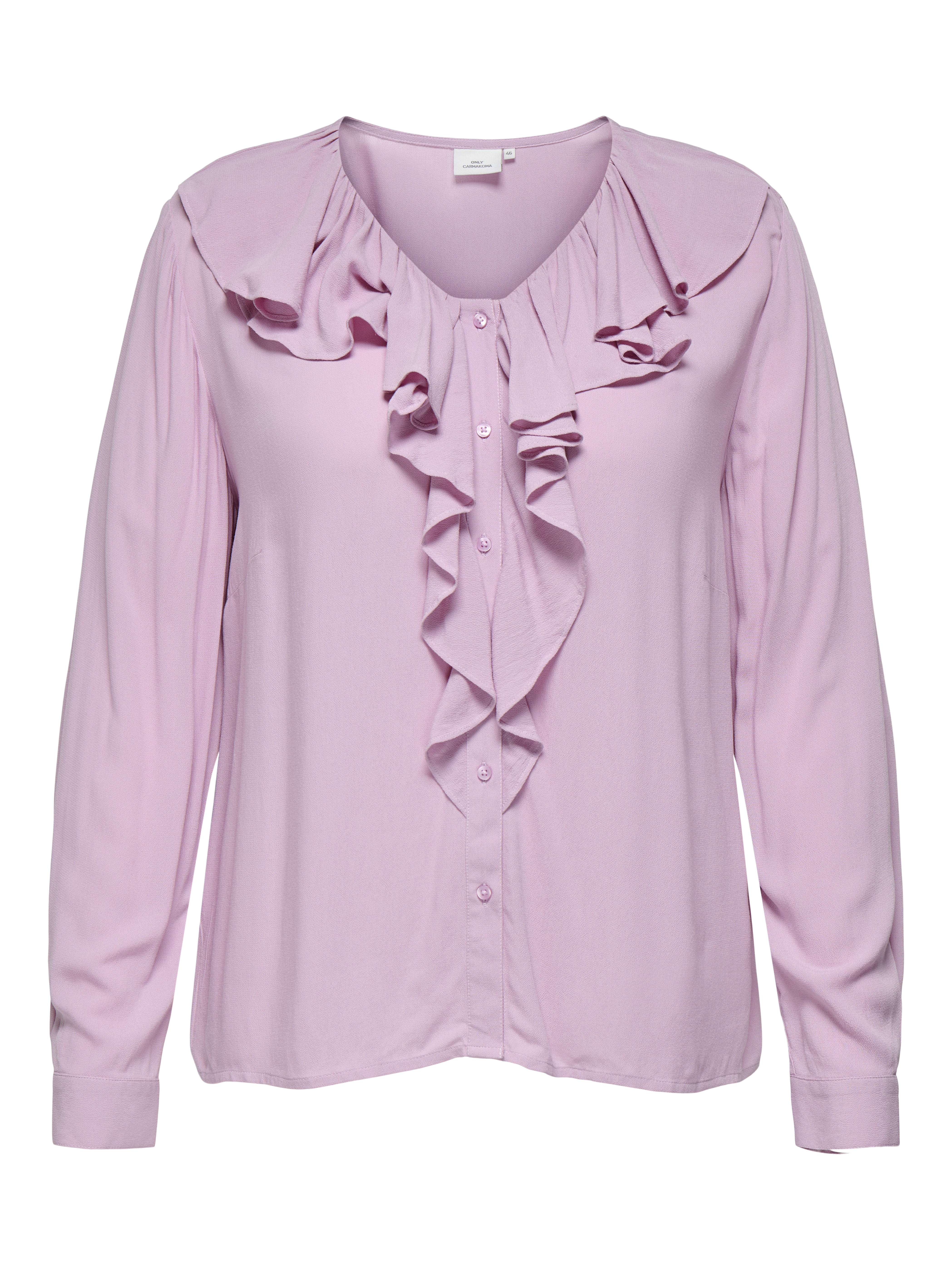 Het ONLY ECO shirt met lange mouw is vervaardigd uit een niet-elastische geweven stof zonder stretch. 100% Viscose LENZING ECO-VERO. De blouse heeft een rechte, losvallende pasvorm en is uitgevoerd met een volledige knoopsluiting aan de voorzijde. De halslijn is voorzien van smalle ruffles die doorlopen langs het decolleté en de sluiting. De lange mouwen zijn afgewerkt met manchetten die gesloten worden met één knoop. De stof is licht en valt soepel, geschikt voor professioneel gebruik of formele omgevingen. Het model is uitgevoerd in een effen kleur.