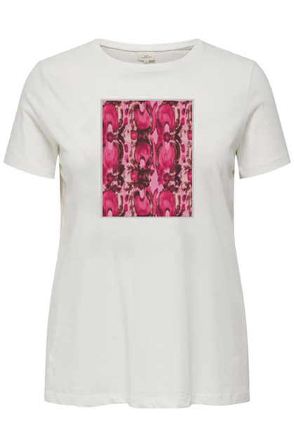 ONLY Carmakoma ECO shirt heeft een leuke opdruk voor van een roze snake print. Hieromheen zit een zilverkleurige rand. Het shirt heeft een basis pasvorm met korte mouwen en V hals. Hij is gemaakt in een super zachte kwaliteit tricot. Combineer bij een mooie jeans of bij een zomerse short.