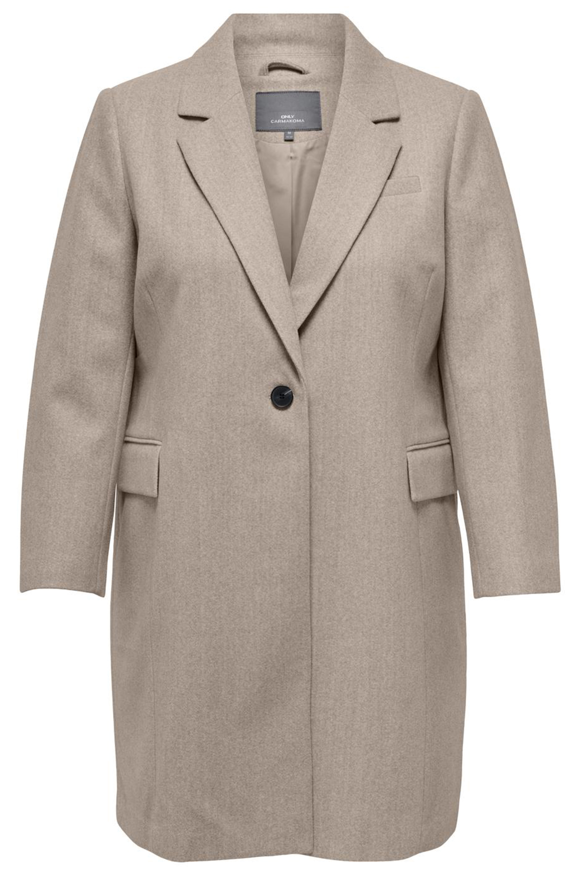 ONLY Carmakoma jas CARNANCY lijkt op een verlengde blazer. Hij heeft een brede rever, sluit met 1 knoop en is gevoerd. Het materiaal voelt zacht aan en lijkt op een mooie wol. In het voorpand zitten klepzakken en in het achterpand zit een split. Hij heeft een lengte van 99 cm bij maat 46. Hij heeft een super goede pasvorm en de mouwen vallen ook lekker lang. De mooiste jassen vind je in de categorie grote maten jassen.