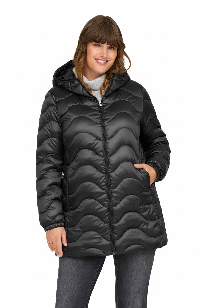 ONLY Carmakoma jas CARVEGA  is een fijne jas om nu te dragen als het weer wat kouder wordt. Hij is gestept, maar niet met een hele dikke voering. De stof heeft een mooie glans. Hij heeft een vast capuchon en eenzijdige rits. In het voorpand zitten steekzakken en de lange mouwen hebben elastiek in de zoom. Wil je meer jassen zien, klik dan op de link.