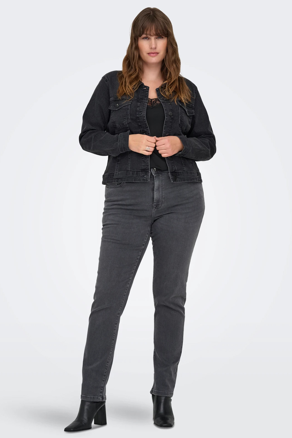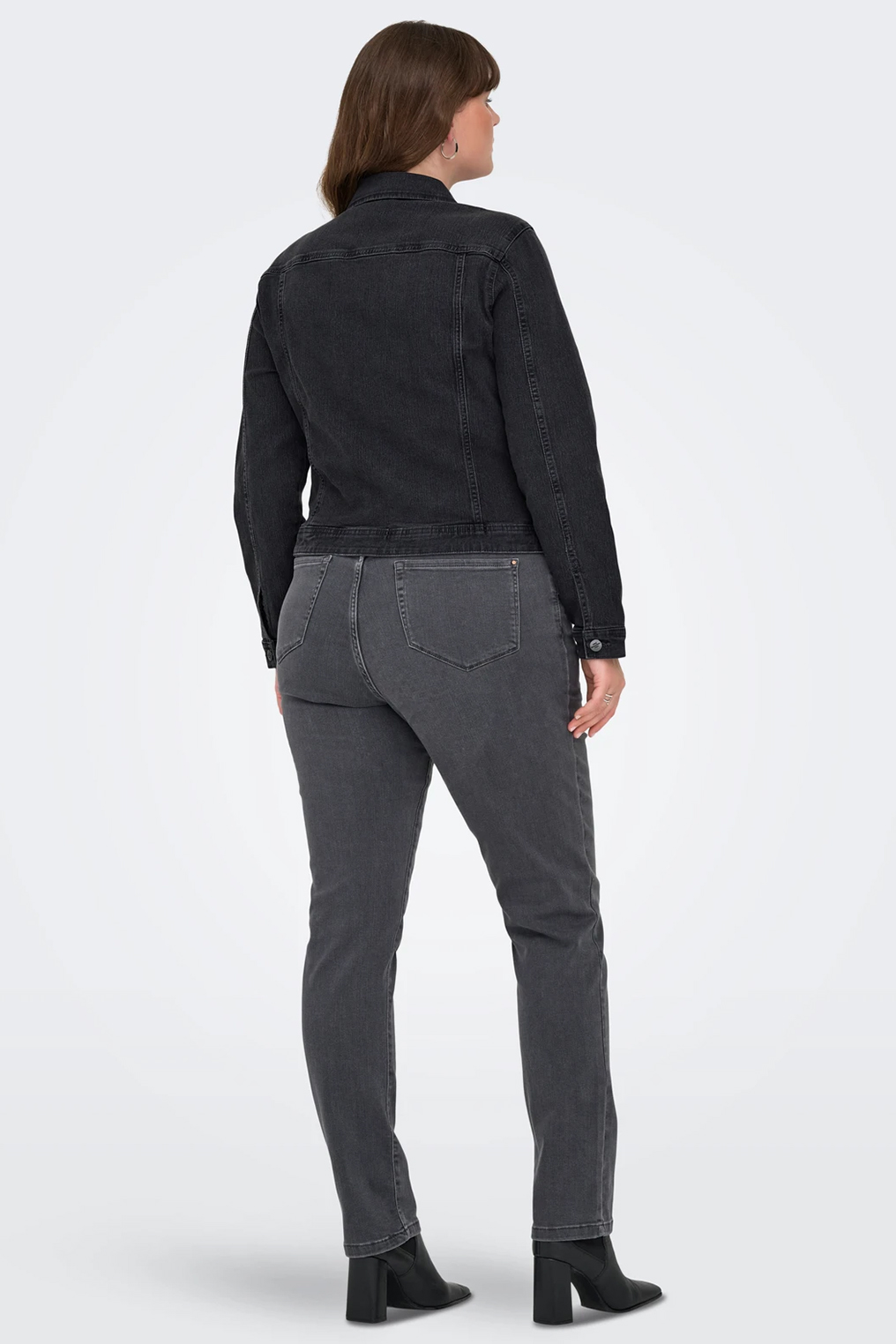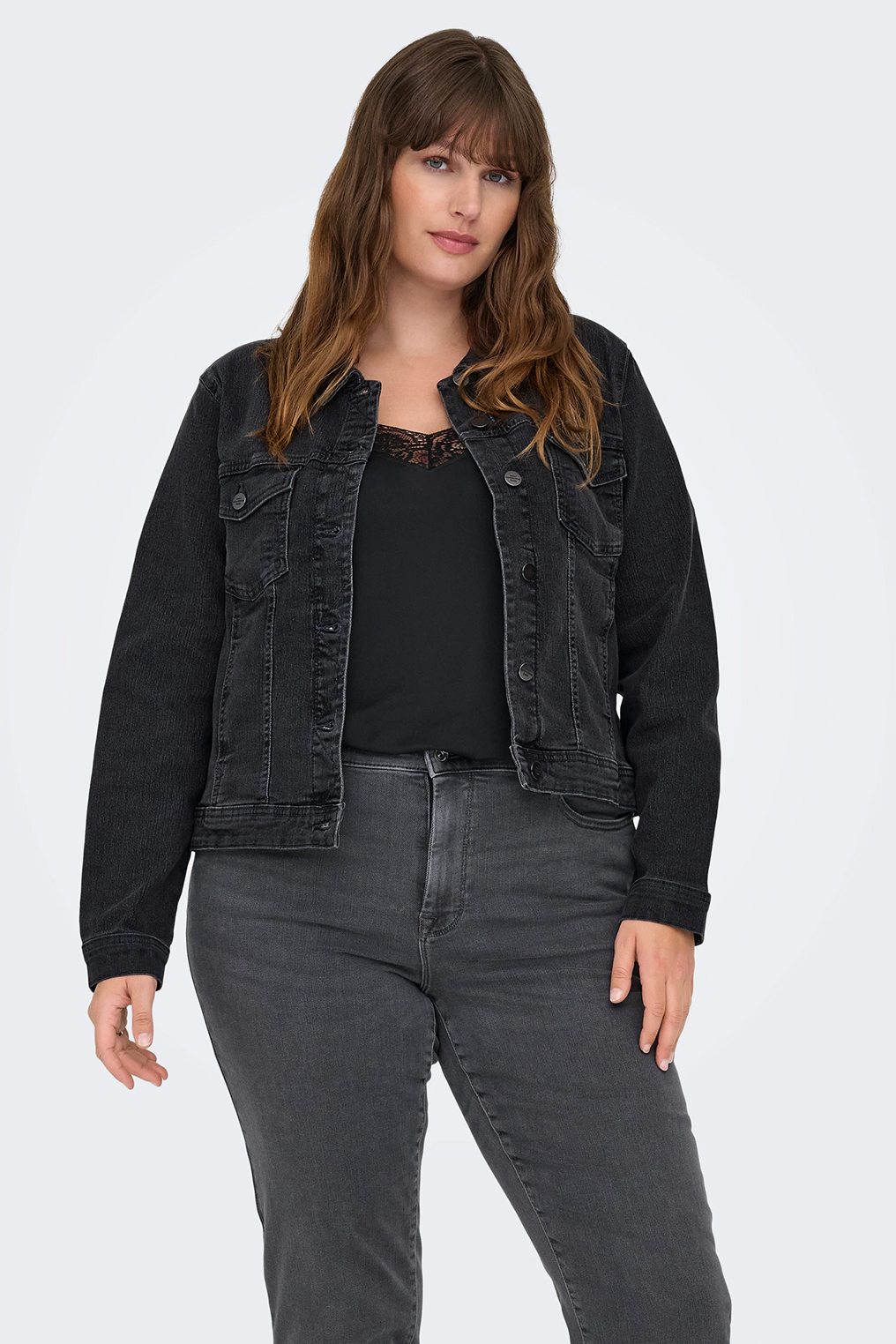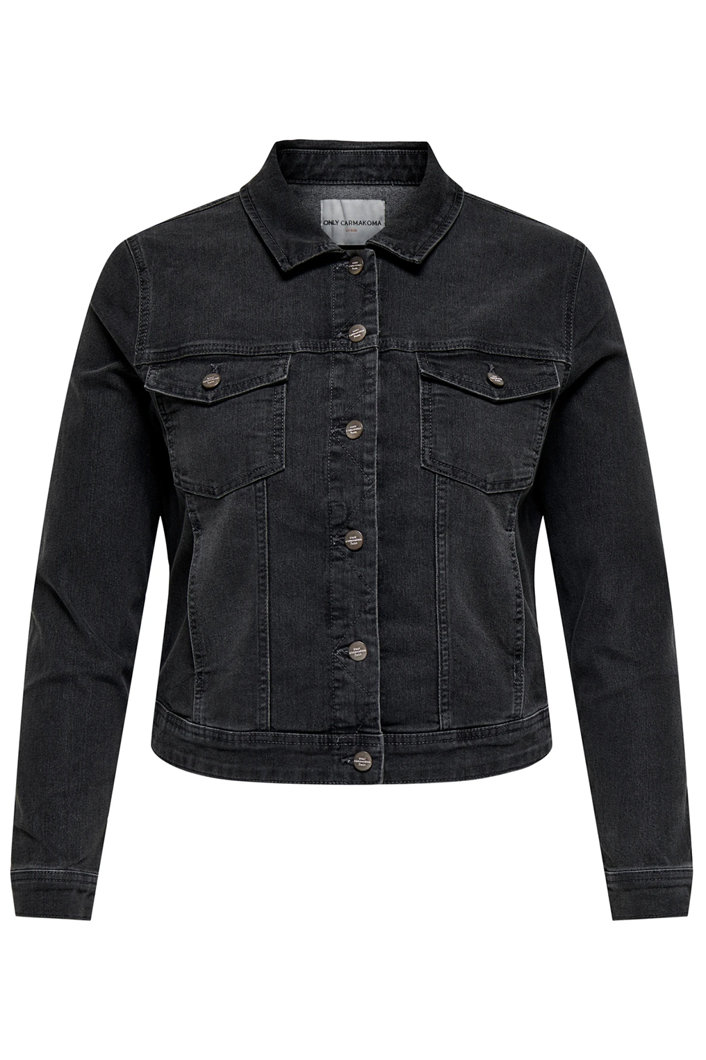 De donkere grijszwarte wassing geeft ’m een stoere, tijdloze uitstraling, terwijl de klassieke details – zoals de gespreide kraag, knoopsluiting en borstzakjes met flap – zorgen voor die echte denim-look.