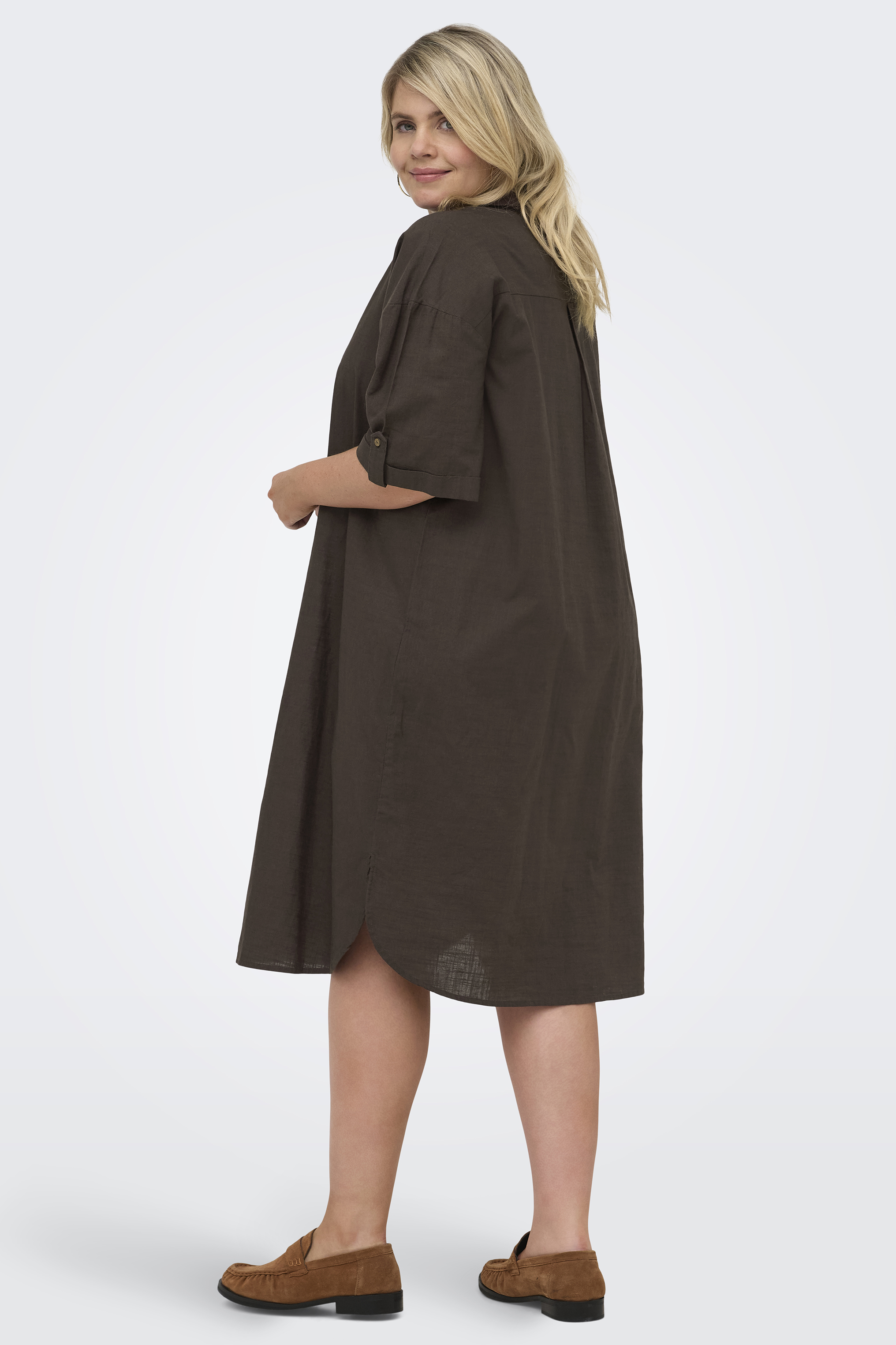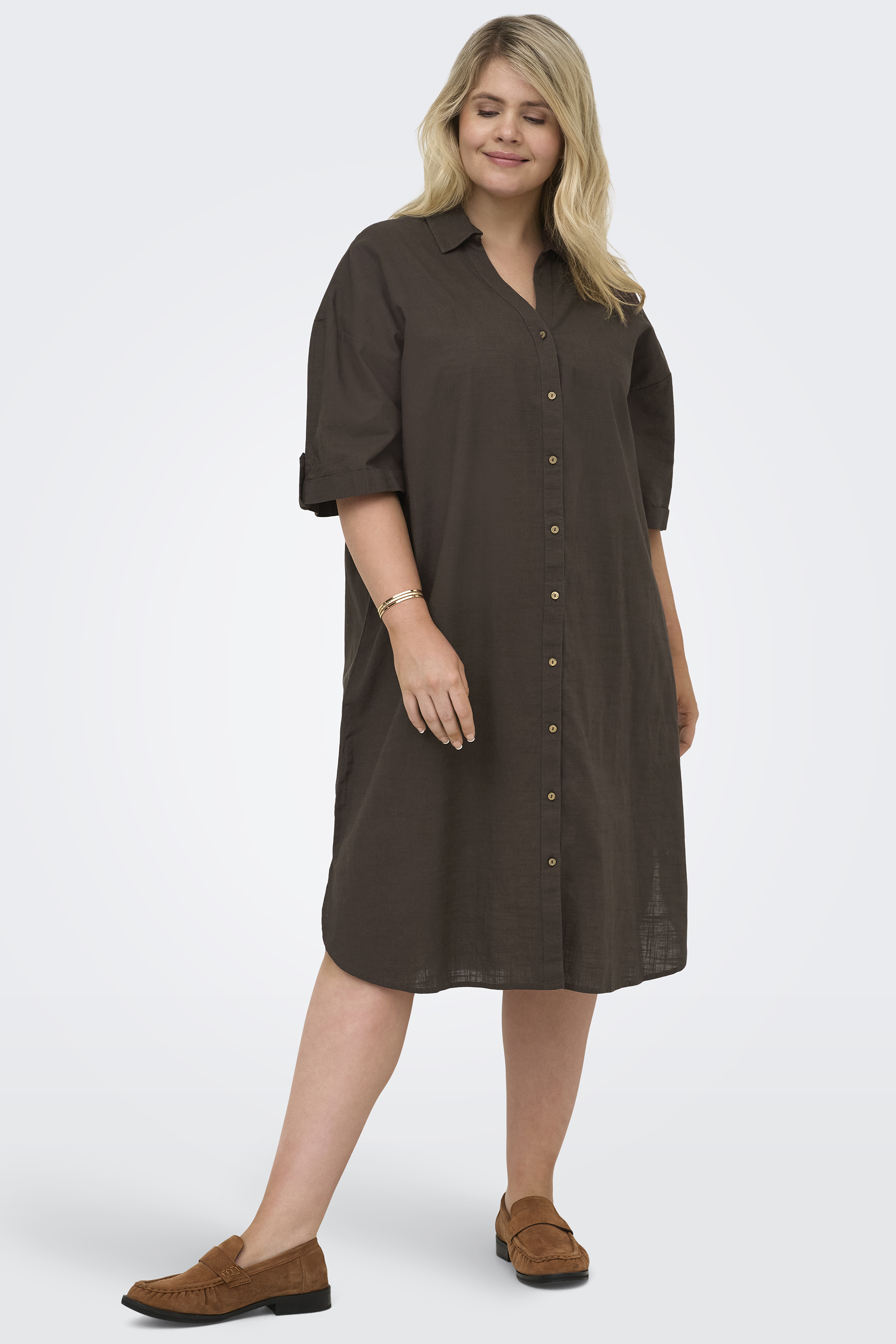 De Carcoco jurk van ONLY Carmakoma is een stijlvolle en comfortabele keuze binnen de collectie plus size en grote maten kleding. Deze jurk heeft een knielengte en is voorzien van een henley hals met knoopsluiting en een klassieke kraag, wat zorgt voor een nette en tijdloze uitstraling.