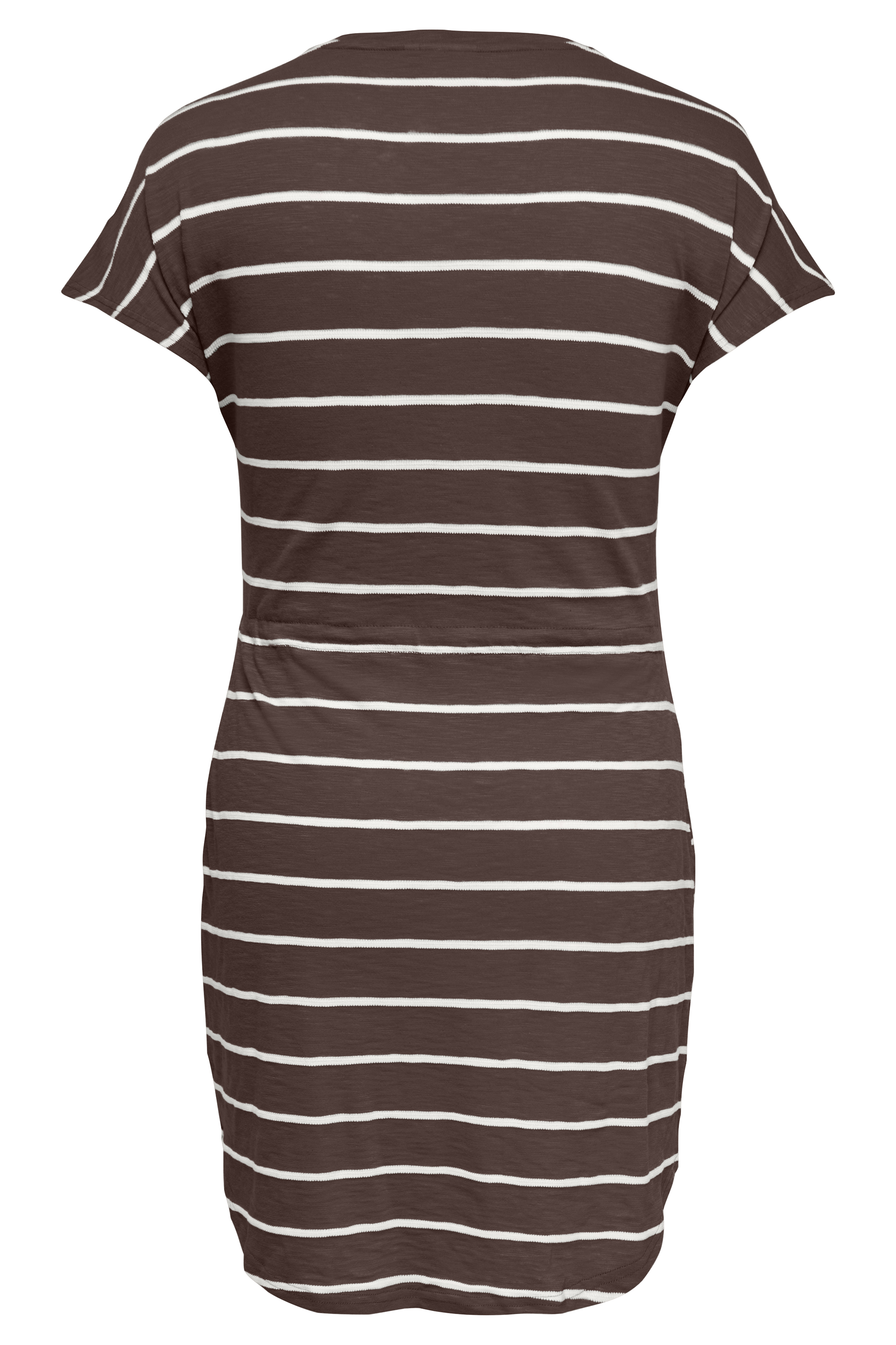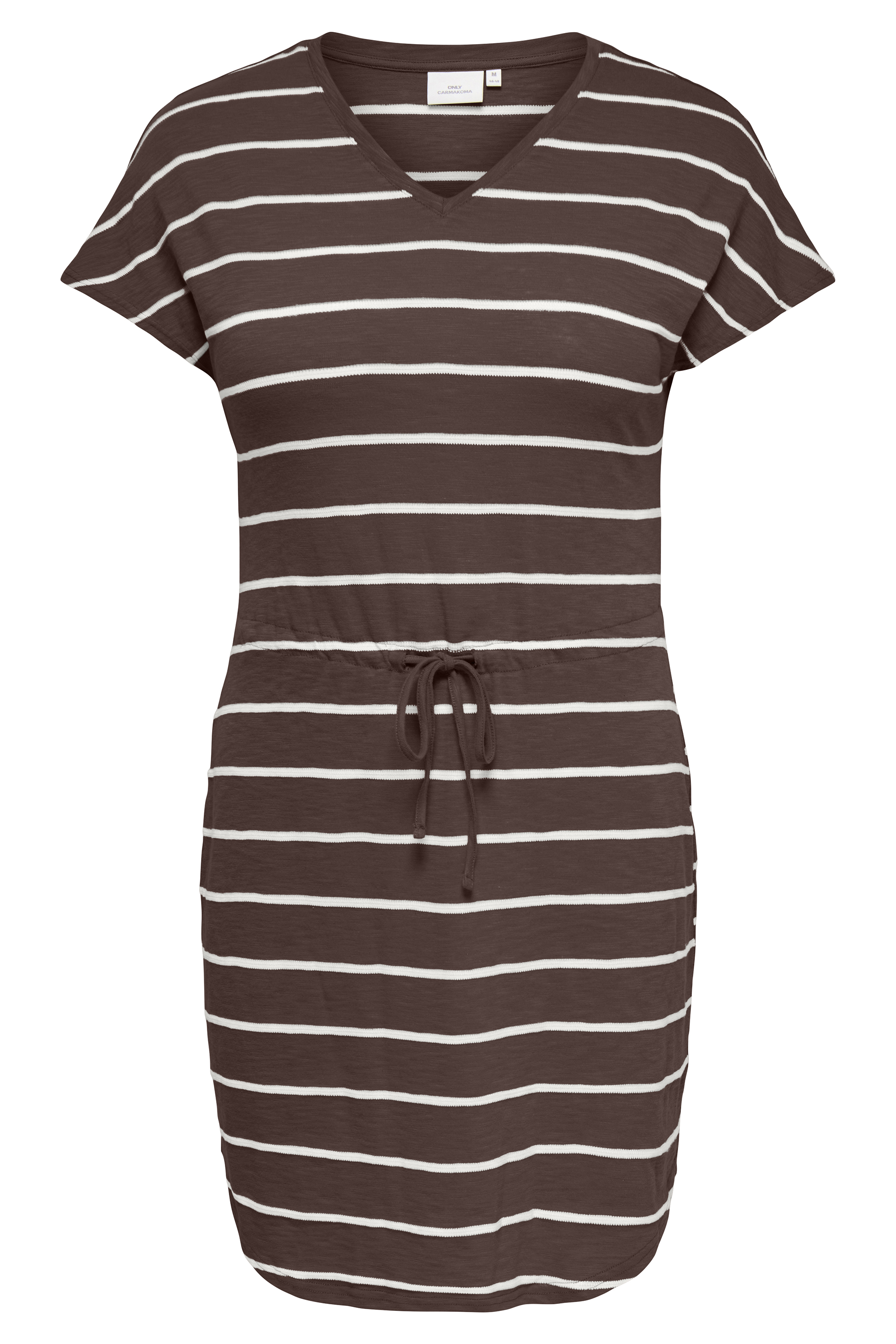 De ONLY Carmakoma Carsummer jurk is een fijne plus size jurk met een bruine basis en witte strepen. De jurk heeft een V-hals en een aantrekkoord in de taille voor een mooie pasvorm. De voorkant is iets korter dan de achterkant, wat zorgt voor een speels effect. Een comfortabele en stijlvolle keuze binnen de grote maten kleding.