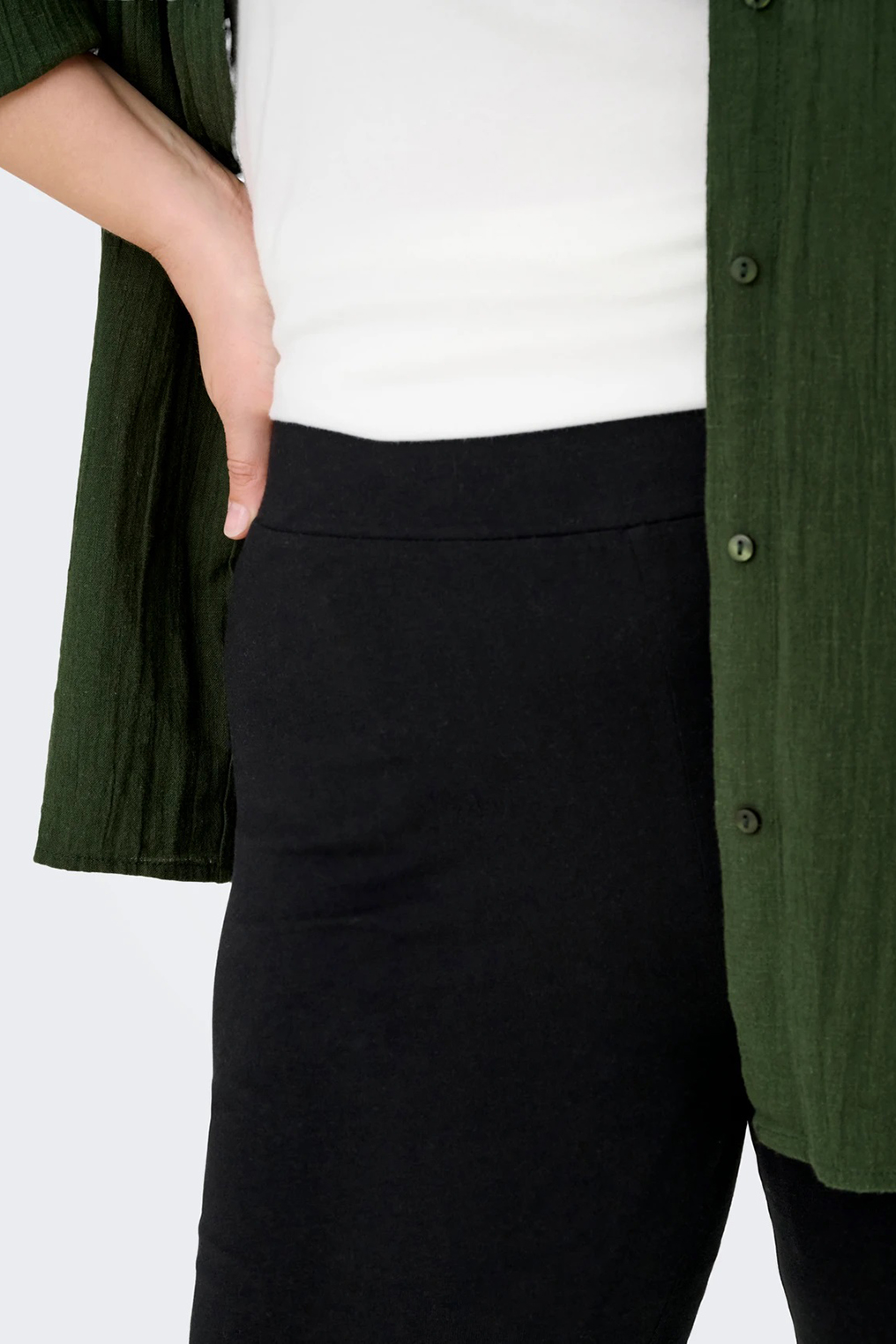 Goede basis legging van ONLY Carmakoma en ook nog voor een leuke prijs. De legging rekt goed. Voor ons erg moeilijk om deze dan op te meten. Het is maar net hoe je deze draagt. Gewoon wat losjes of lekker strak. De legging is rondom elastiek en heeft een  bredere elastieken band, hierdoor blijft hij goed zitten. De binnenbeen lengte is 69 cm, net boven de enkels. Je vindt meer leggings in de categorie grote maten leggings.