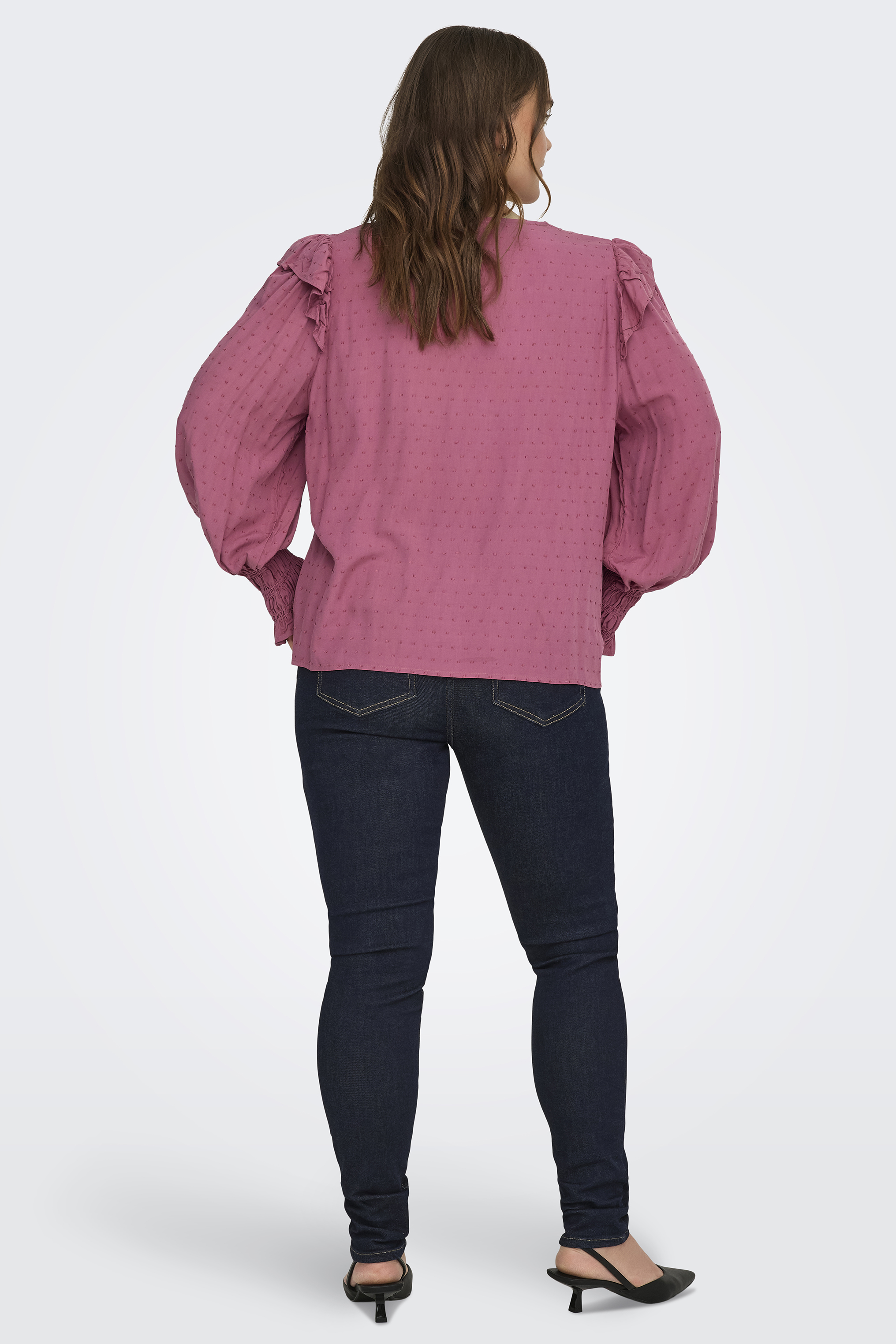 • Mouwen: Lange ballonmouwen met gesmokte manchetten