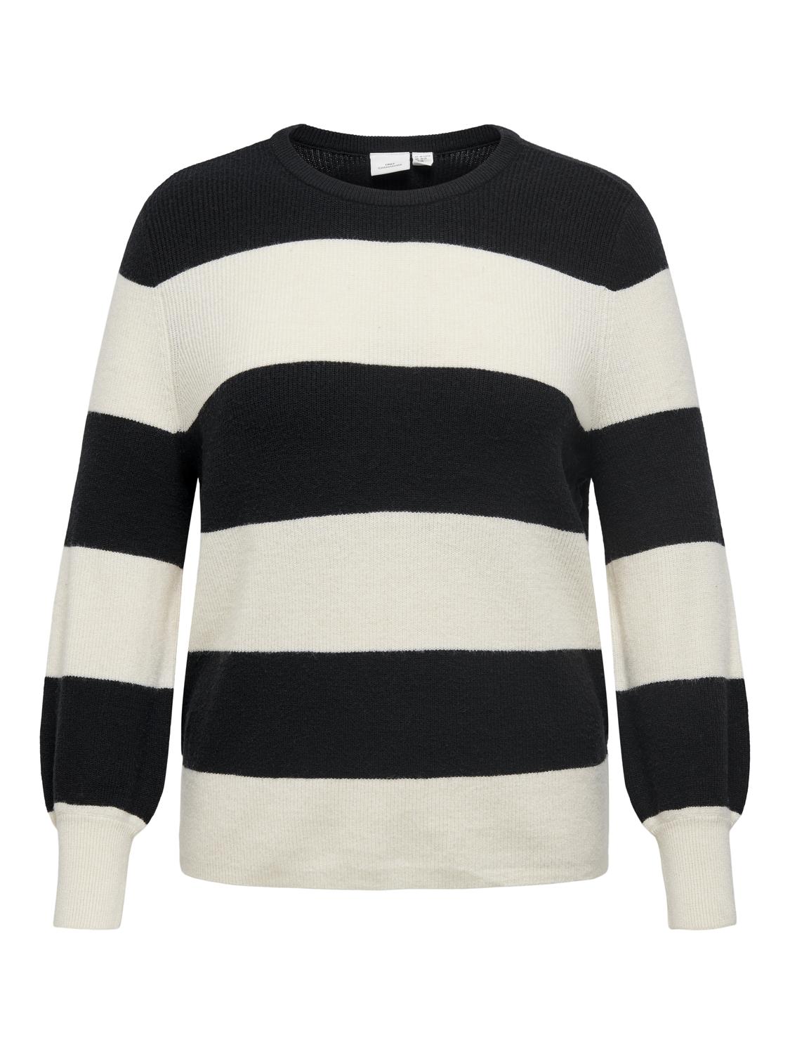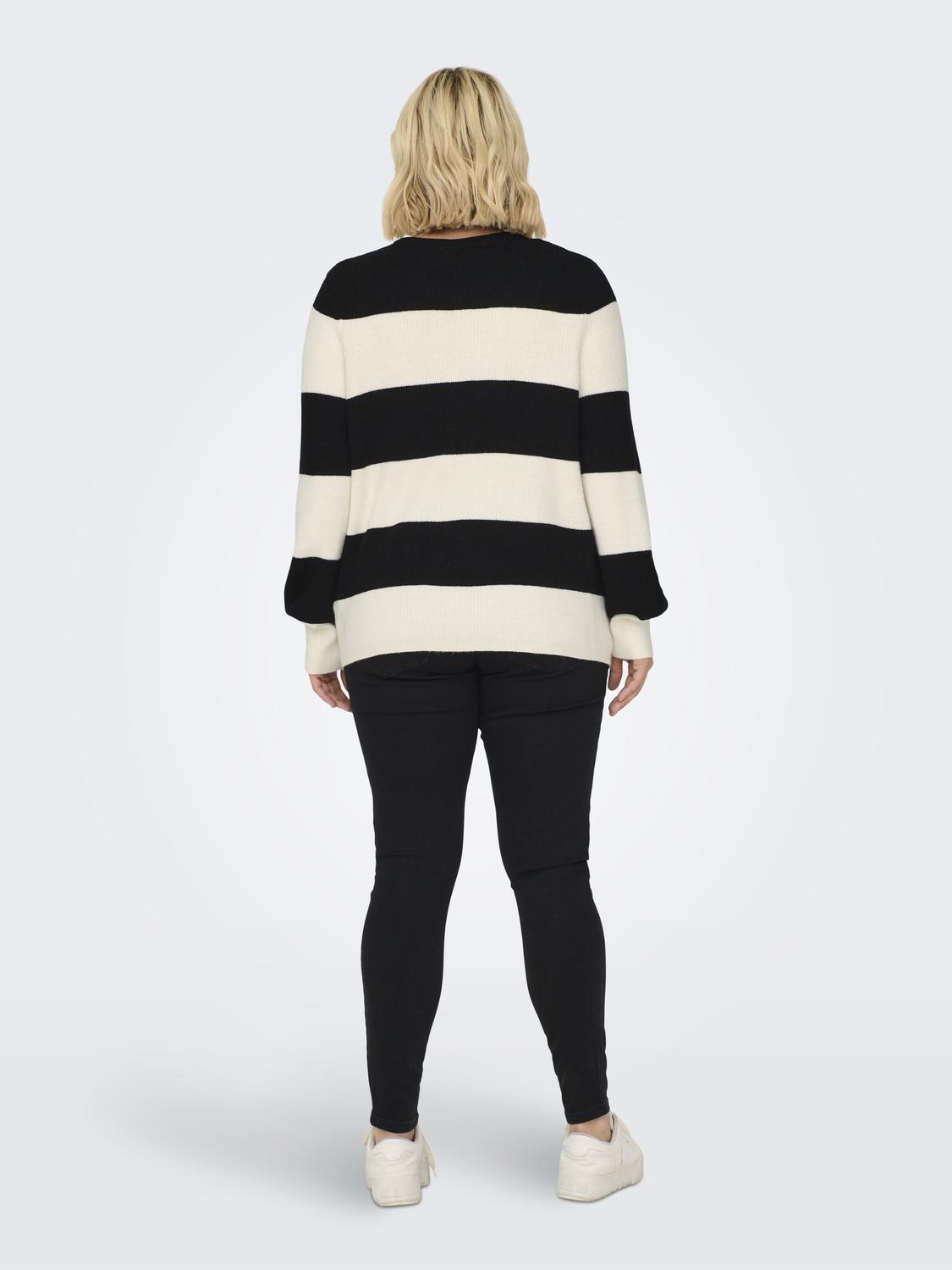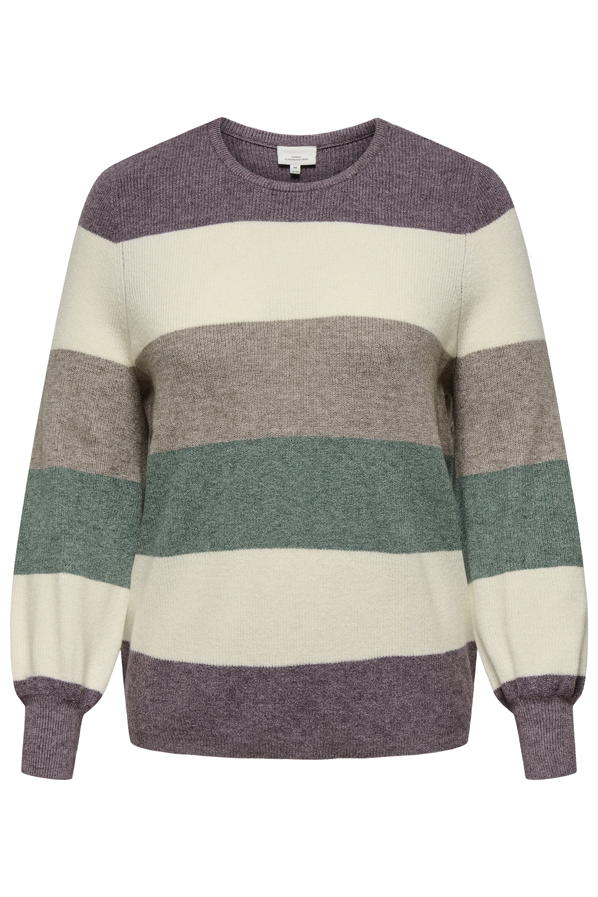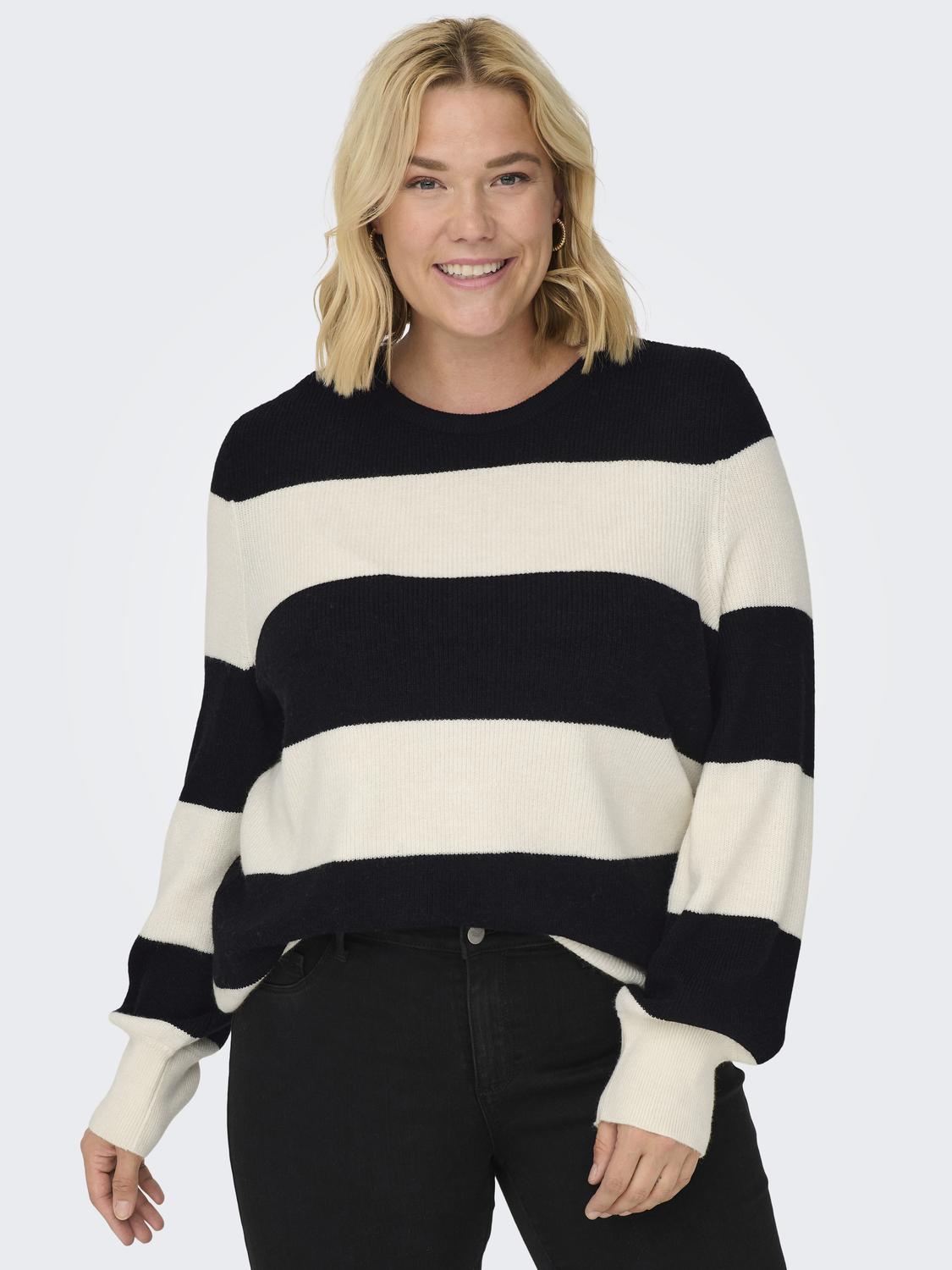 Deze trui van ONLY Carmakoma is een stijlvolle en comfortabele keuze, ontworpen met een strak, modern kleurblokpatroon. Het ontwerp bestaat uit brede horizontale strepen. Naast de huidige stijl, zijn er ook twee andere kleurencombinaties beschikbaar. De trui heeft een ronde halslijn en lange mouwen met elastische boorden die de casual, sportieve uitstraling benadrukken. De gebreide stof heeft een zachte textuur die zorgt voor een aangename draagervaring, terwijl de losse pasvorm een comfortabele fit biedt.