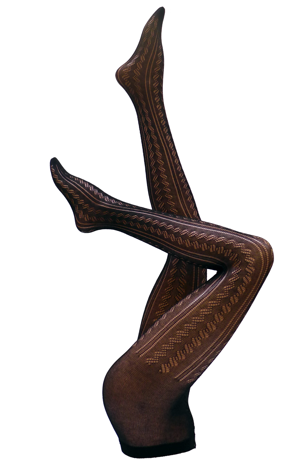 Opaque katoenen panty van Cette met ajour motief, katoenen kruisje, rugstuk en platte naden. 40 den. Verkrijgbaar in de kleur zwart en de maten L, XL, 2XL en 3XL.