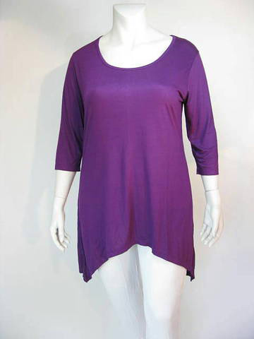 Heerlijk basis shirt model Escape van Luna Serena loopt aan de zijkant uit in punten. Dit shirt is een one size model wat inhoudt dat het valt tot ongeveer maat 50-52. Het shirt heeft een ronde hals en 3/4 mouw en is gemaakt van een mooie zachte viscose tricot. Leuk om te combineren met een print broek.