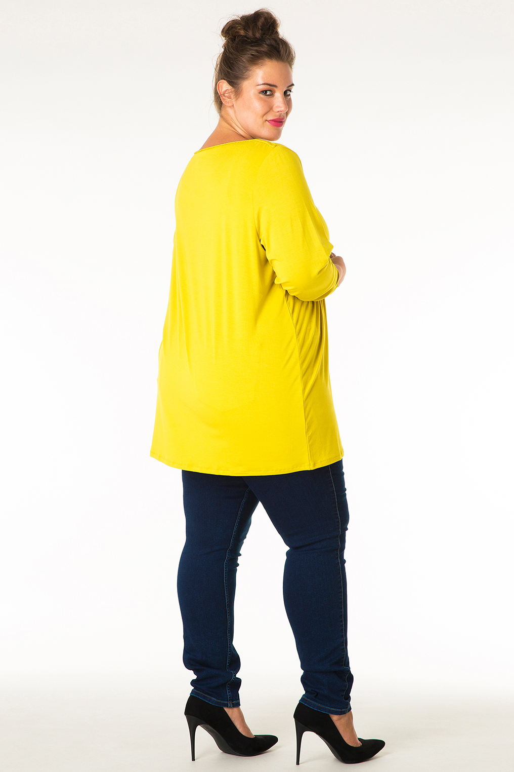 Shirt van Yesta met langs de hals een vlecht die over de schouder verder loopt. Het shirt is gemaakt in een fijne viscose tricot.