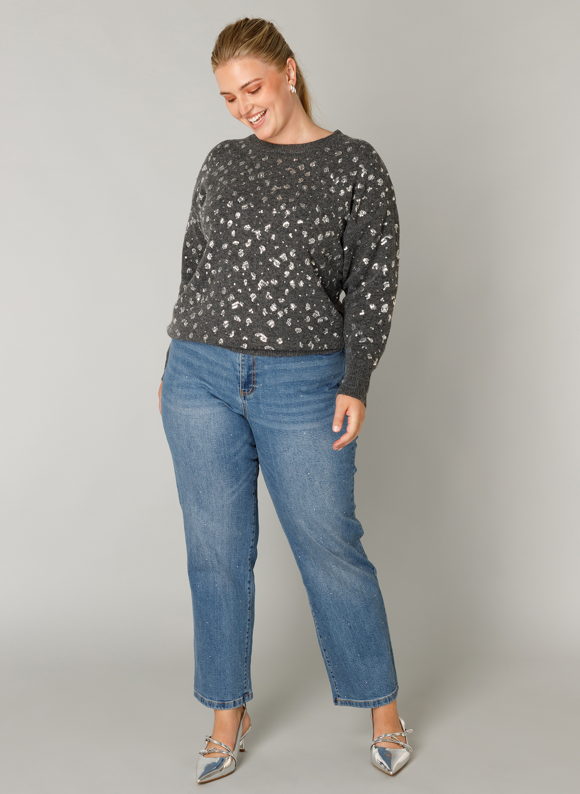 De comfortabele fit maakt deze trui ideaal voor dagelijks gebruik, terwijl het glanzende detail net dat beetje extra toevoegt voor een speciale gelegenheid. Een veelzijdig item dat moeiteloos in jouw garderobe past.