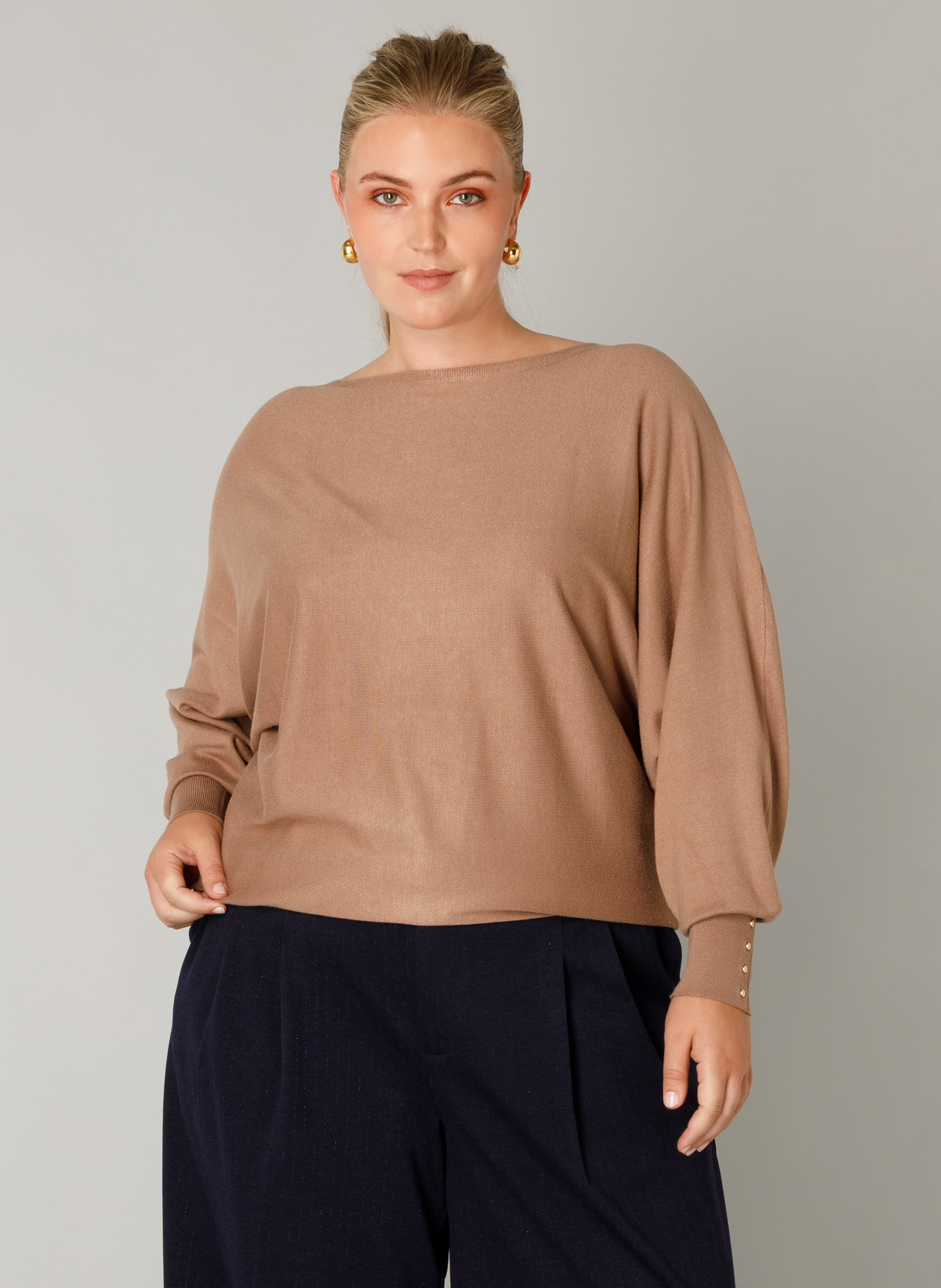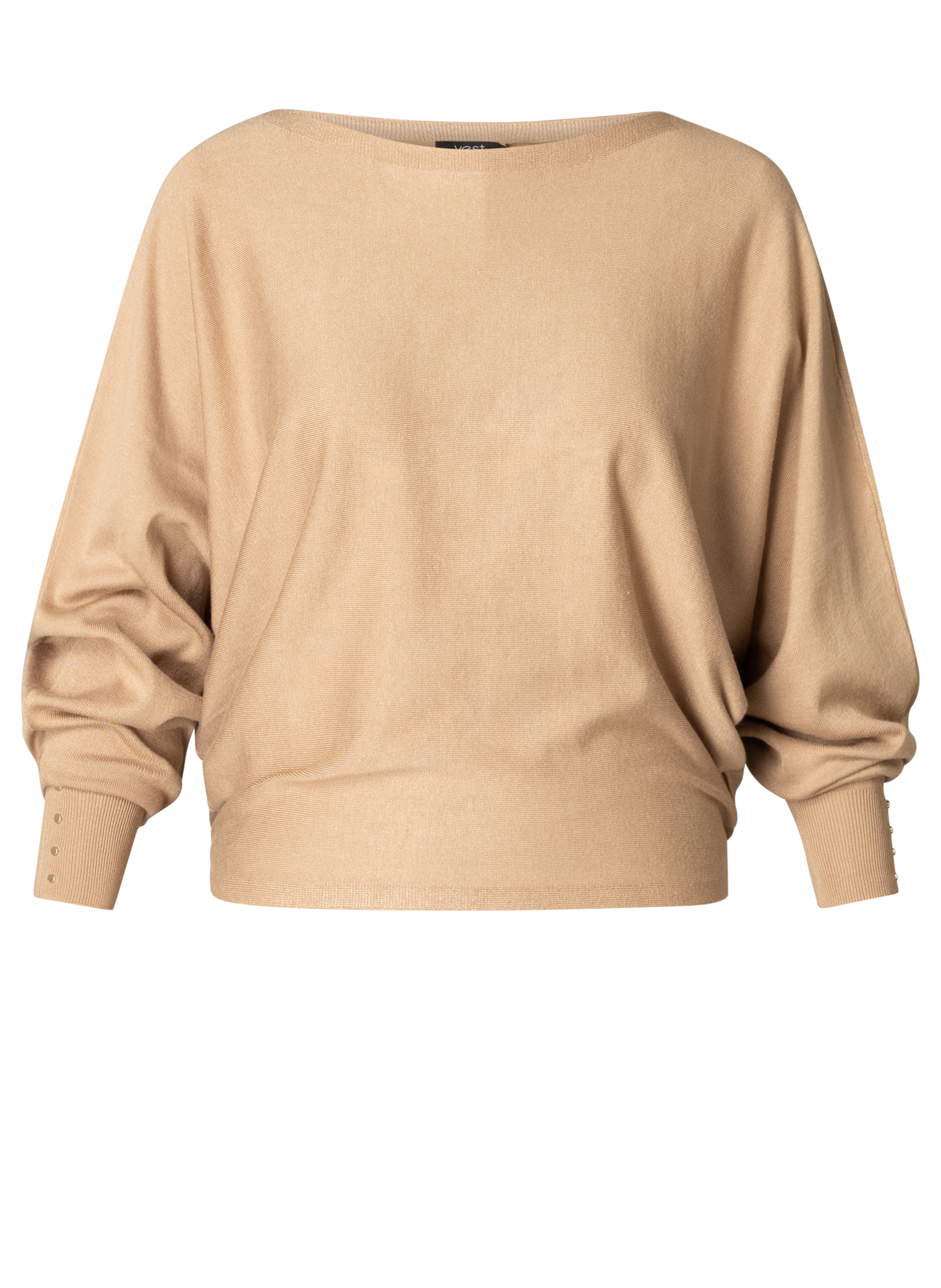 Deze stijlvolle gebreide trui van Yest Curve geeft je outfit een vrouwelijke twist dankzij de opvallende wijde mouwen die elegant eindigen in aangesloten manchetten. De zachte stof voelt heerlijk aan, terwijl de flatterende boothals zorgt voor een ontspannen, maar verfijnde uitstraling.