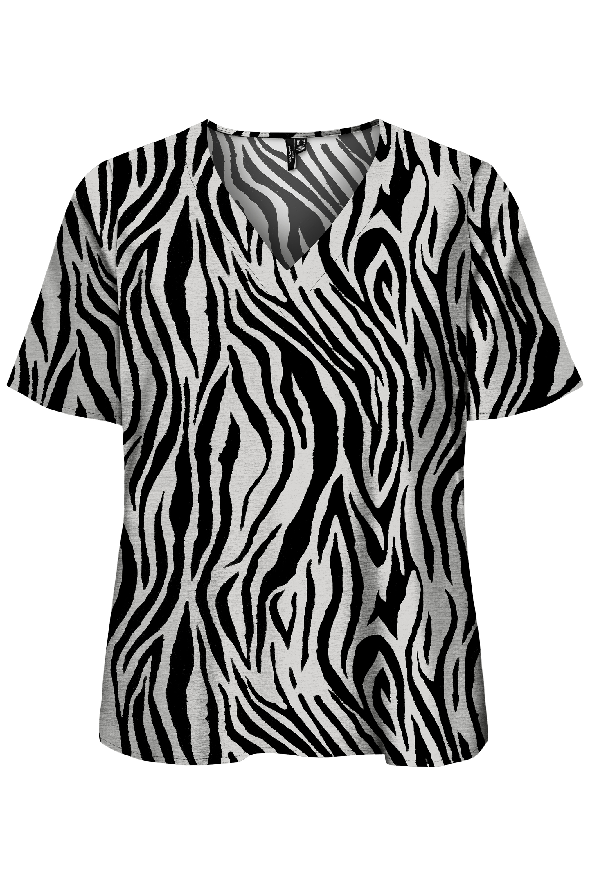 De Vero Moda VMCMYMILO top is een stijlvolle en luchtige top met een trendy dierenprint. Dit model heeft een vrouwelijke V-hals en een comfortabele pasvorm, waardoor de top moeiteloos combineert met zowel een jeans als een rok. De speelse print geeft de top een modieuze uitstraling en maakt hem perfect voor een casual maar verzorgde look.