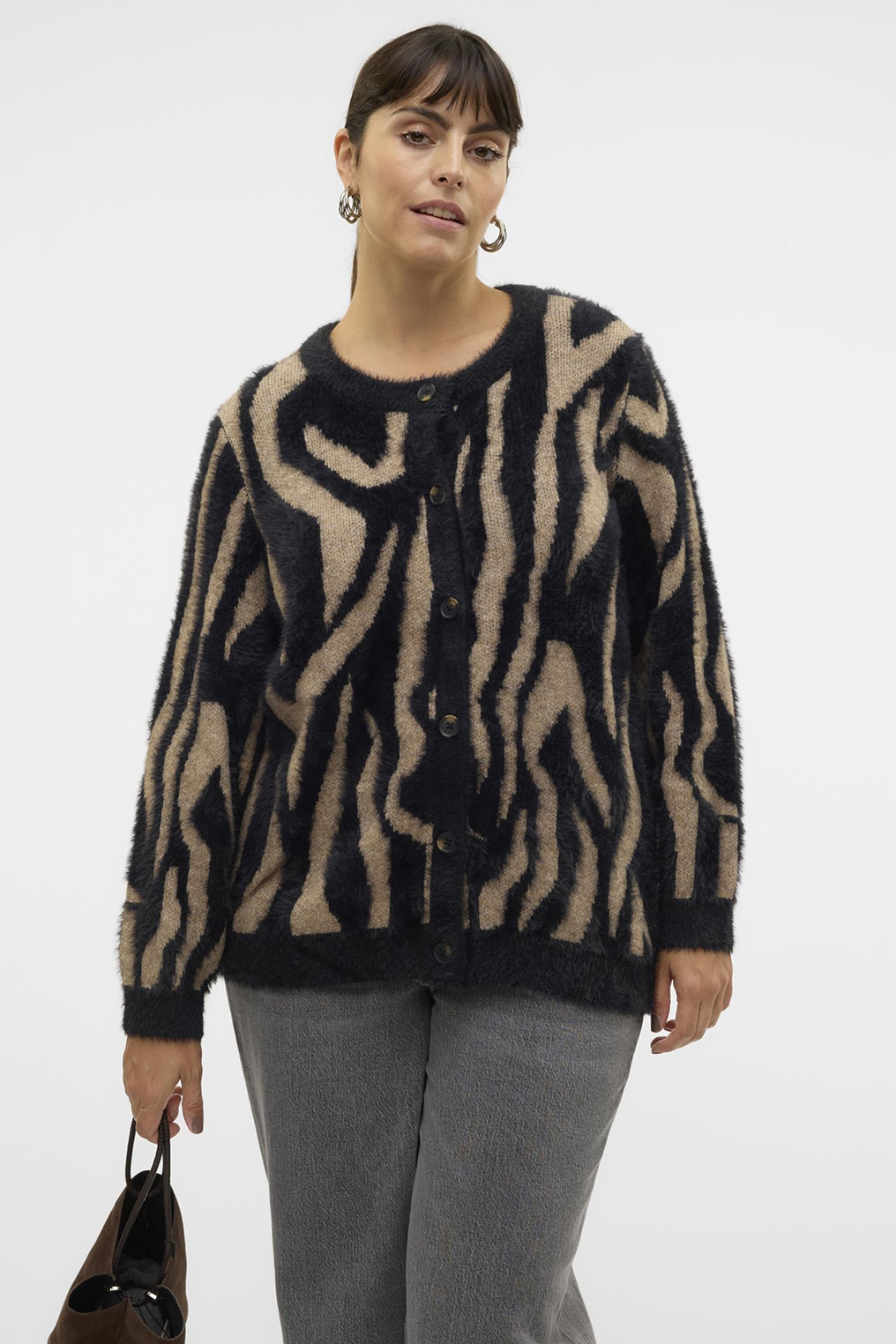VERO MODA curve ECO vest VALENTINA is gemaakt in een super zacht harig breisel met een animal print erin. Hij heeft een ronde hals, lange mouwen  en sluit met knopen. Het is een wat korter model en daardoor ideaal te dragen op een wat hogere broek of met een jurk. Kijk in de link naar nog meer leuke vesten.