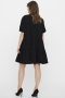 Weer zo,n leuk trendy jurkje van VERO MODA curve. Hij is gemaakt in een organische katoen, beter voor ons milieu. Hij heeft een ronde hals met een smal boordje en een knoop pad tot de eerst deelnaad. De ruche banen hebben smalle rimpels, hierdoor is hij wijdvallend.  De korte mouw heeft een licht poffend effect en een smalle macnhet met een knoopje. Dit is een knielang model.